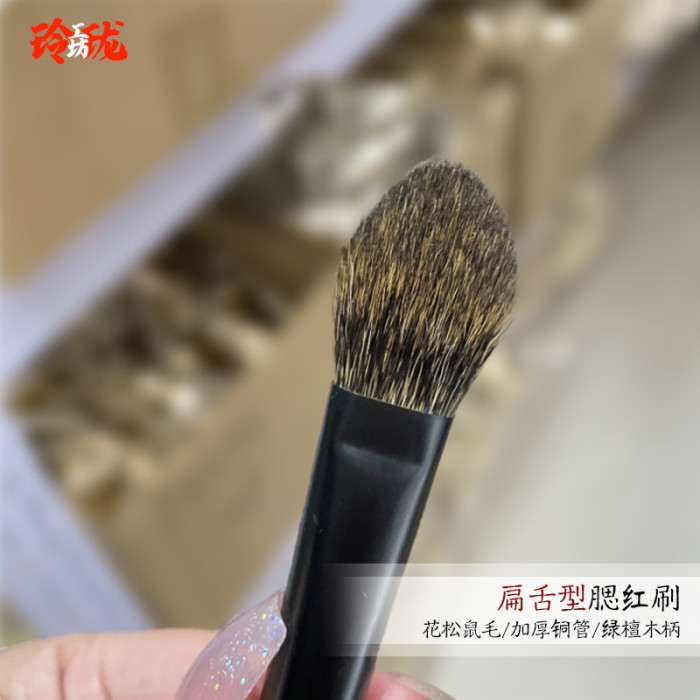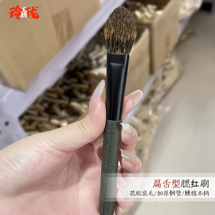[玲瓏]綠檀木松鼠毛大號暈染腮紅刷扁舌形桃心形火苗形滄州動物毛