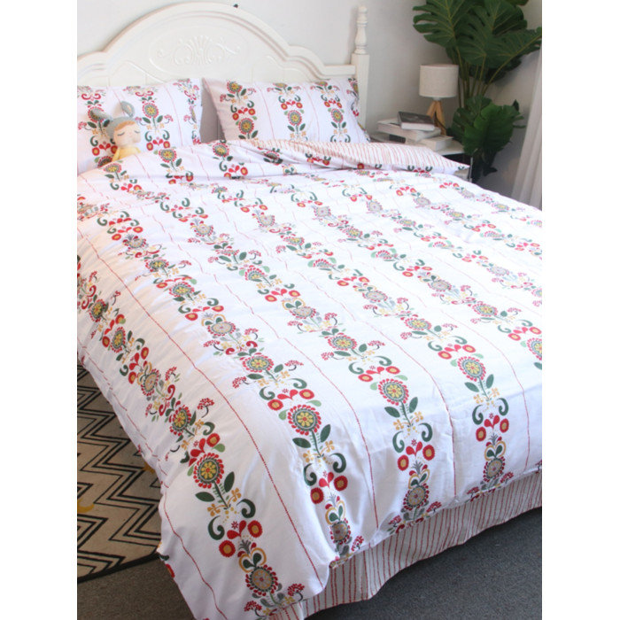 民族風撞色純棉床上四件套條紋床單單件 太陽花被套枕套自由搭配