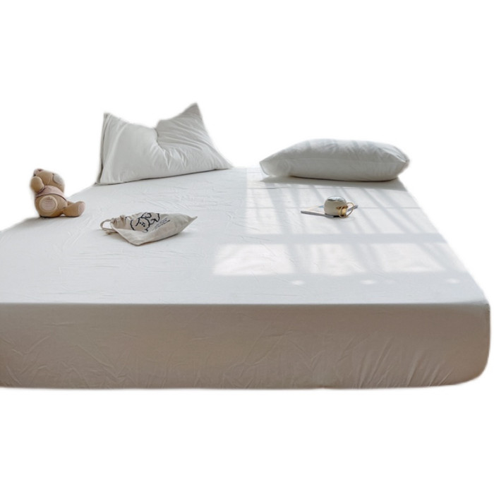 北歐純色全棉水洗棉床笠單件 純棉床單三件套蓆夢思保護罩棕墊套
