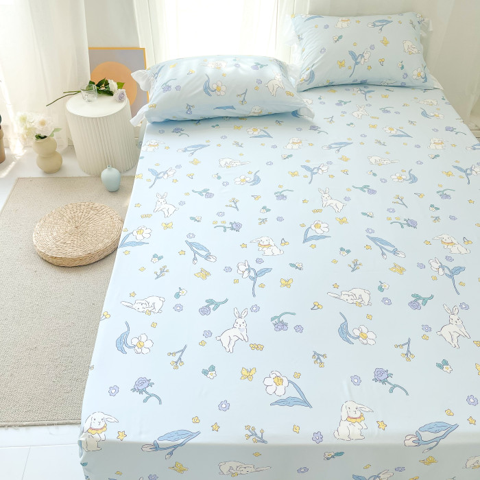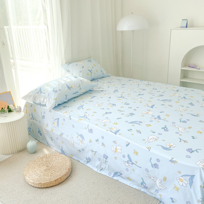 兔娜麗莎 | 花花造夢原創奶藍小兔子碎花全棉床單床笠單品宿舍床