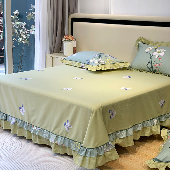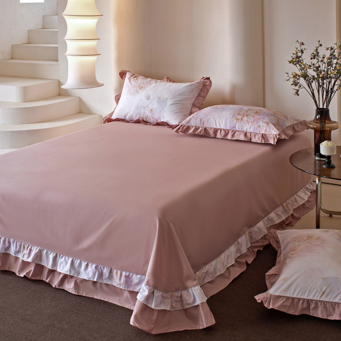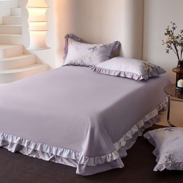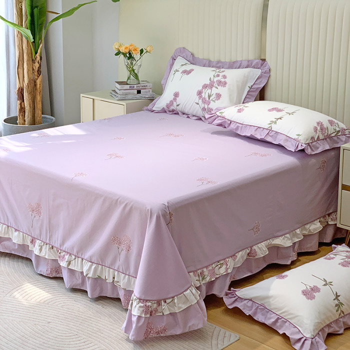 1米8x2米床雙人床單純棉單件100全棉紫色 四季通用被單三件套花邊