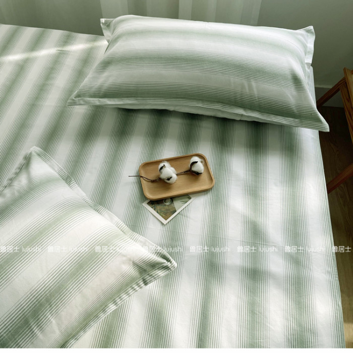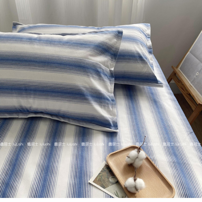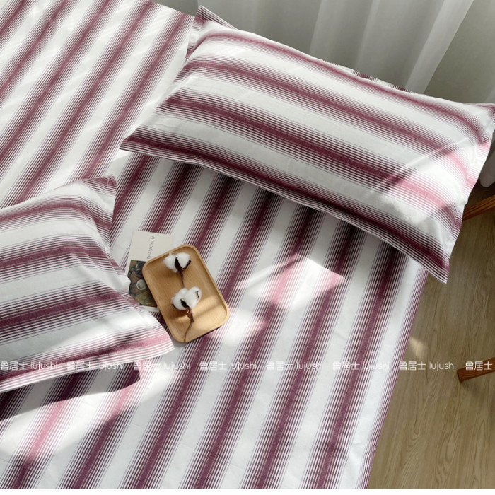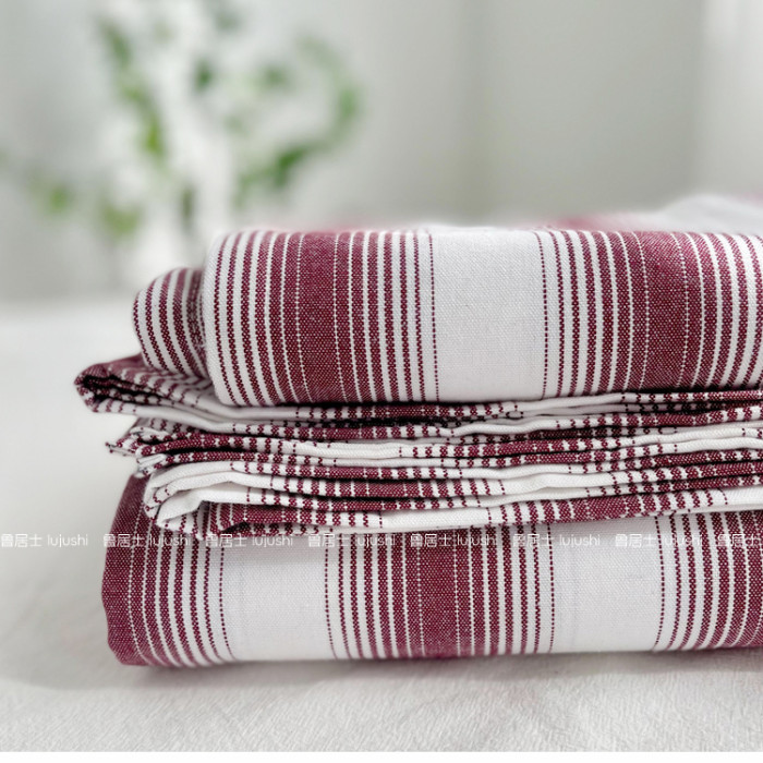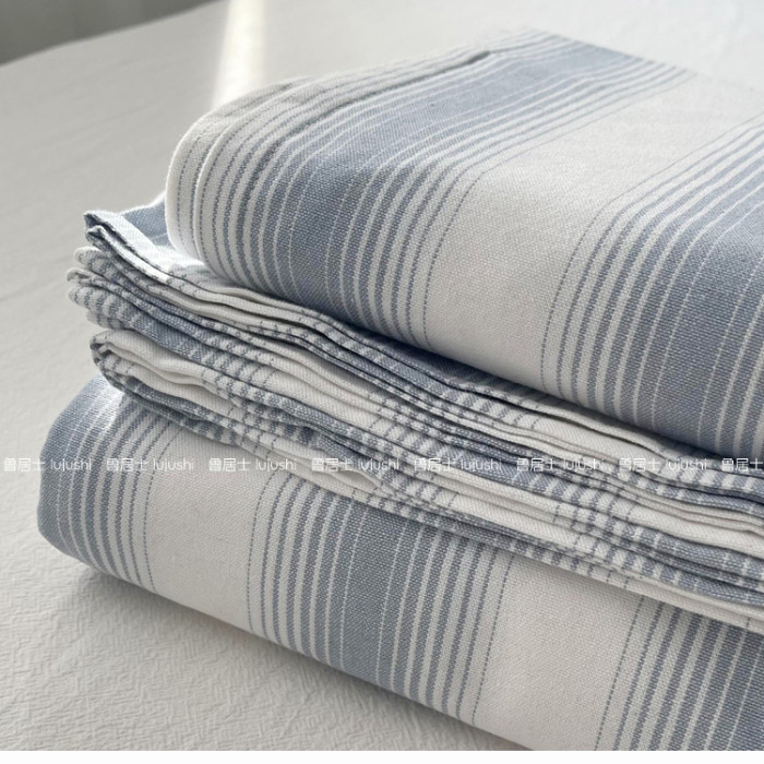 老粗布純棉加厚床單1.51.8米文藝三件套條紋格子全棉單雙人床加密
