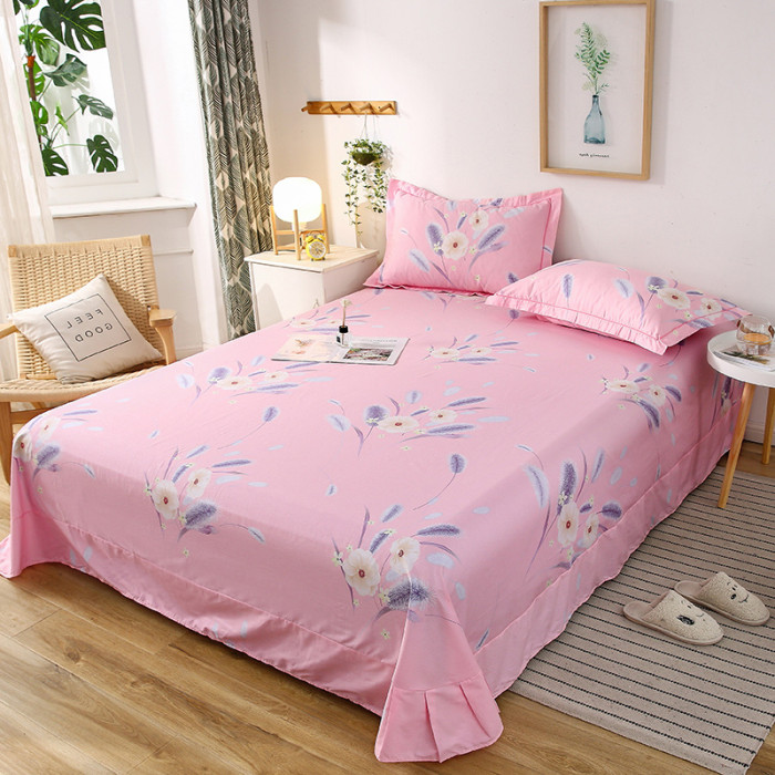 60支全棉床單枕套2三件套高支高密純棉斜紋加厚面料2.7米簡約花卉