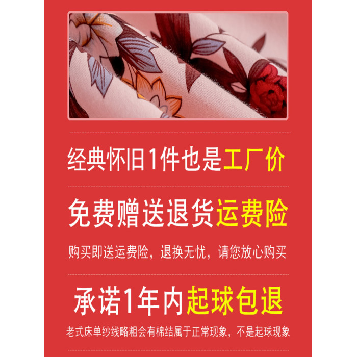 高級上海國民老式懷舊牡丹花色純棉單件絲光加厚棉老粗布全棉床單