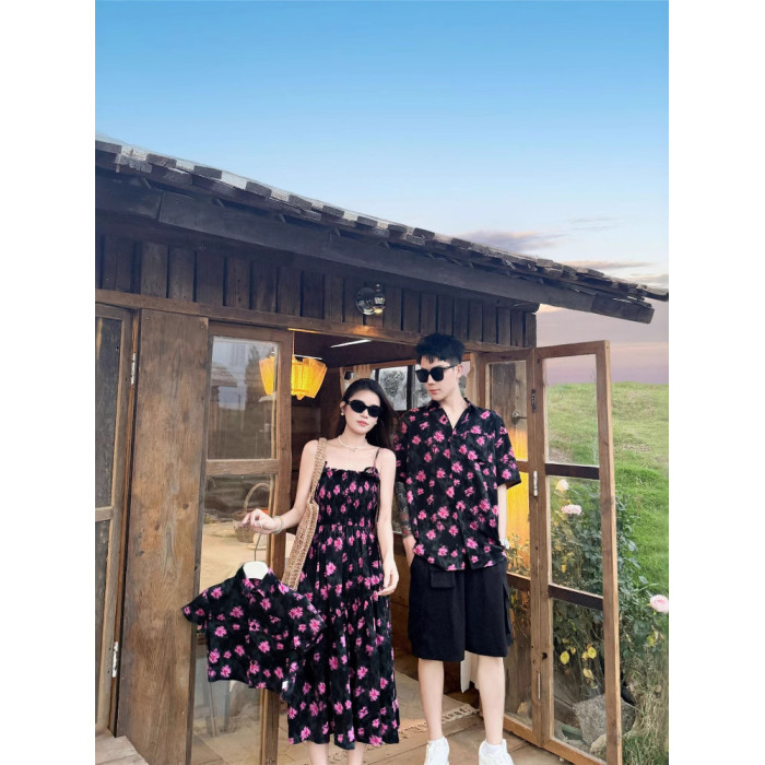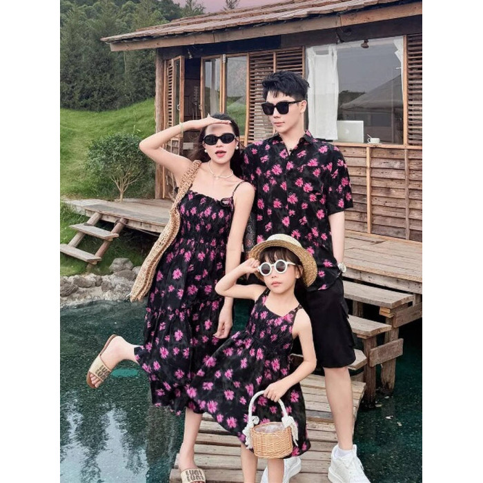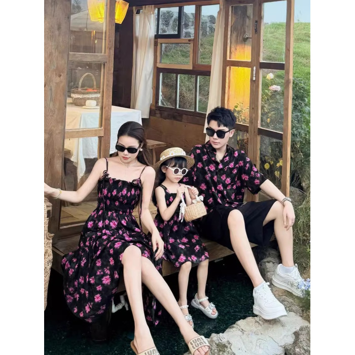 三亞海邊親子裝夏天2025新款一家三口四口母子沙灘度假母女連衣裙