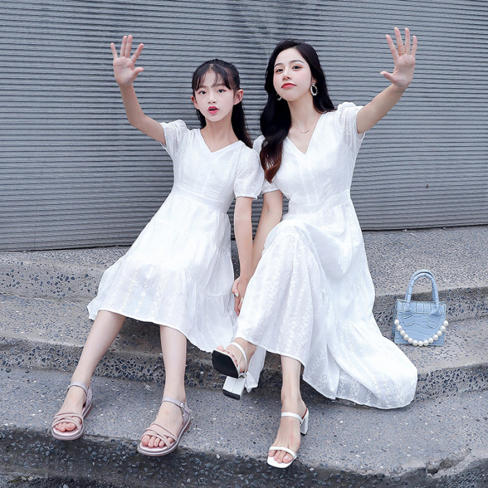 網紅親子裝2025新款潮夏裝母女裝棉布連衣裙時尚韓版洋氣白色裙子