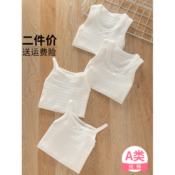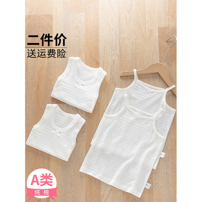夏季女童純棉薄款背心白色吊帶內衣睡衣女孩寶寶打底衫外穿A類2件