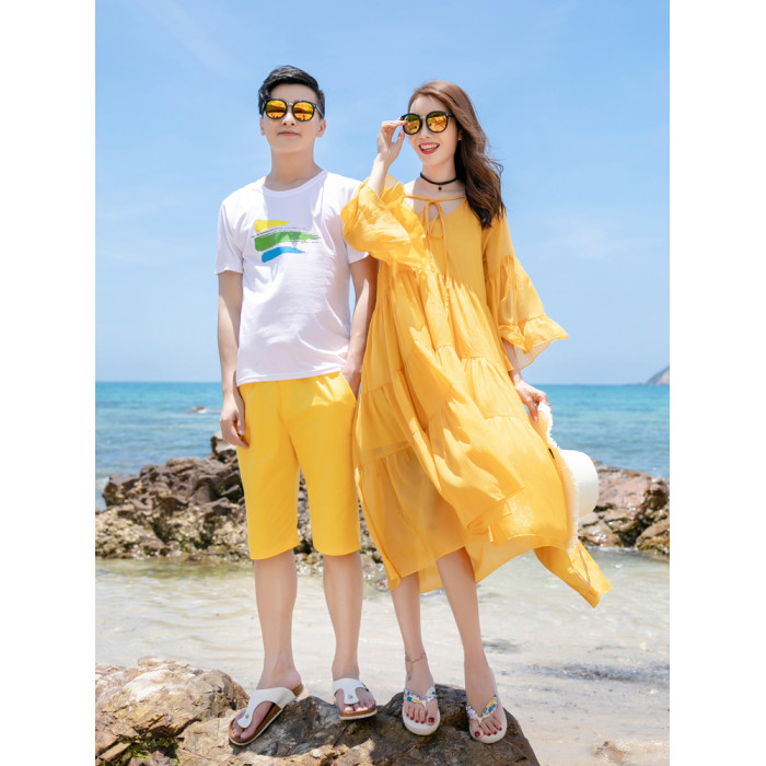 親子裝裙褲夏季一家三口四口海邊度假拍照寬松沙灘連衣裙全家套裝