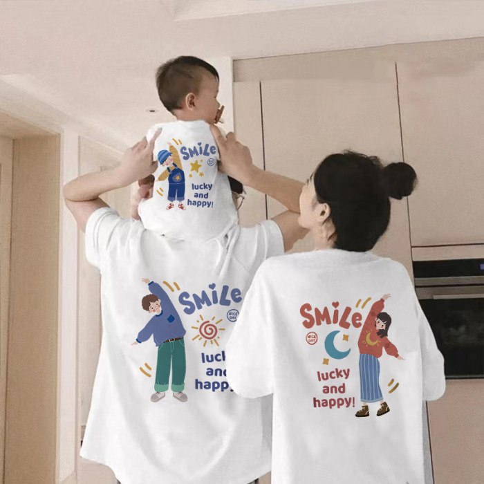 【3件白色】爸+媽+男/女寶(1688-91正反微笑親子)