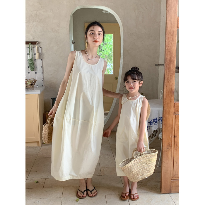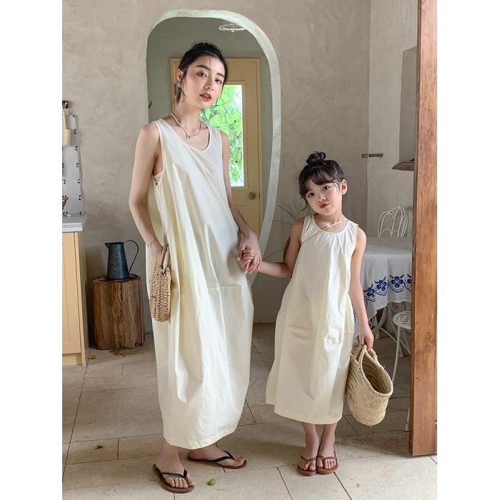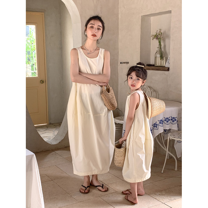 親子裝夏季新款潮母女裝無袖背心連衣裙洋氣韓版寬松長裙純棉裙子
