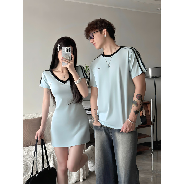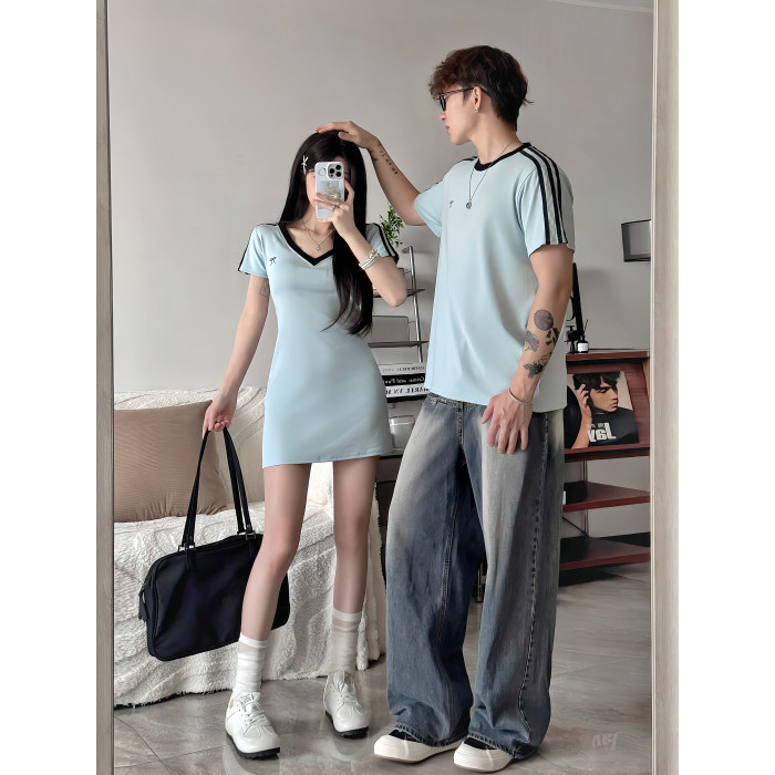 美式情侶裝一 衣一裙純欲辣妹風短裙女夏季新款潮流百搭短袖男t恤