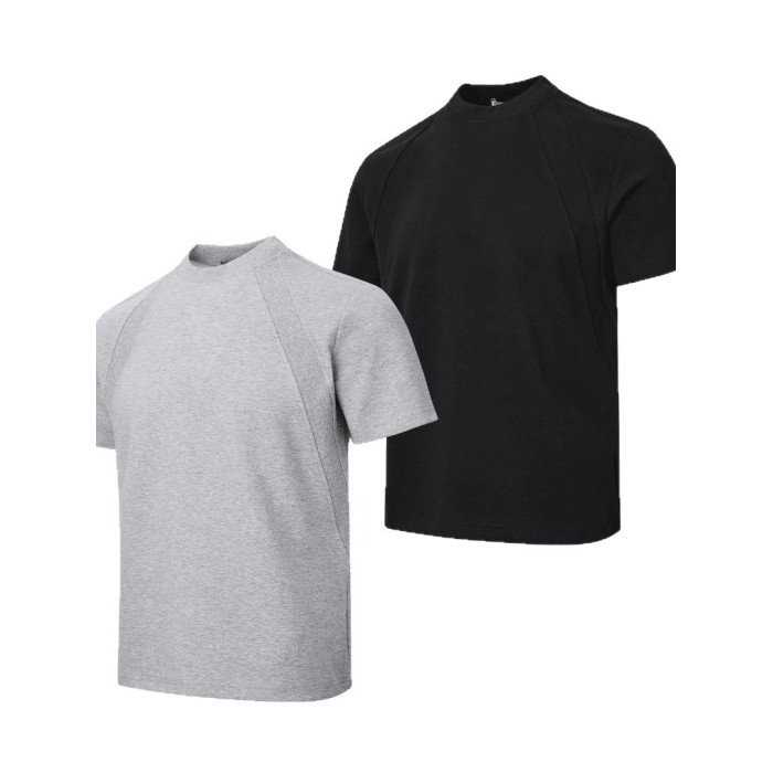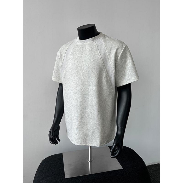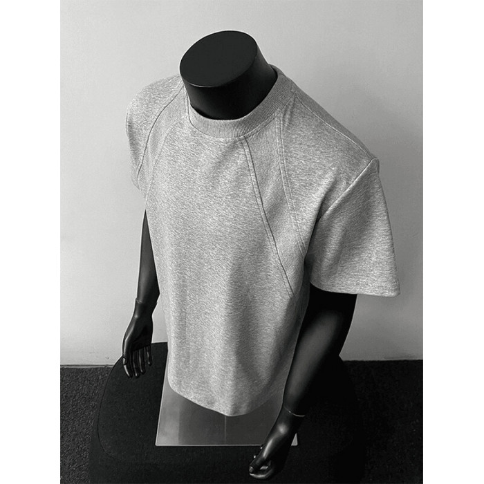 胖東來美式重磅正肩結搆潮牌短袖男t恤boxy版型圓領空氣層拼接短