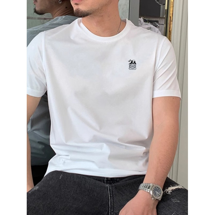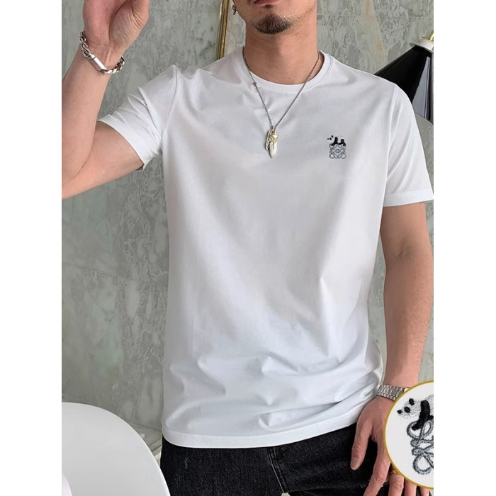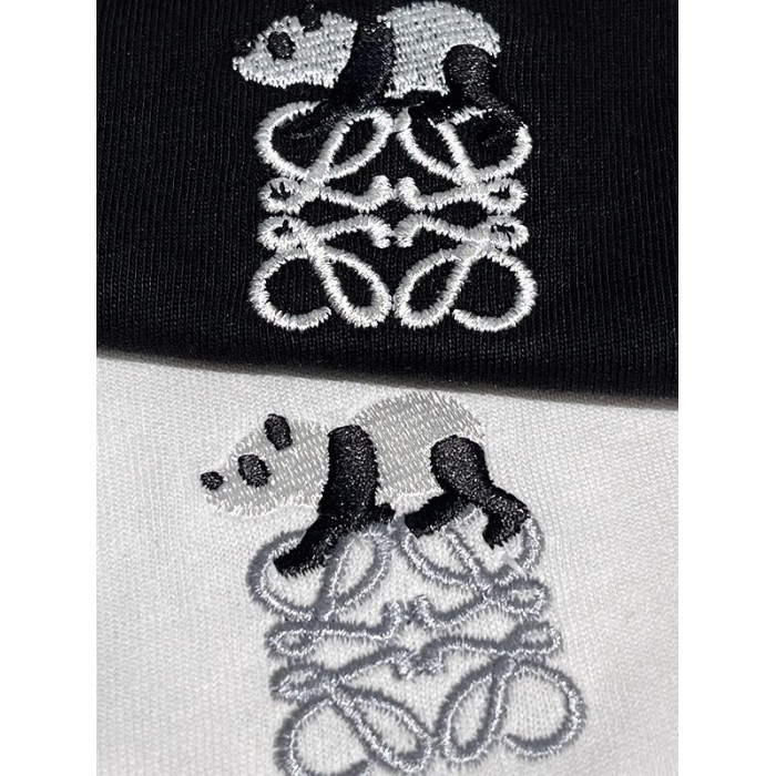 高級名牌設計感短袖男T恤刺綉卡通熊貓圖案時尚潮流情侶裝潮T
