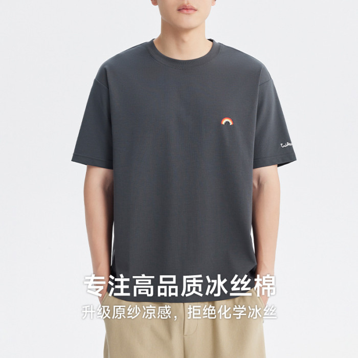 速乾冰絲棉 圓領印花涼感男t恤短袖夏季新款潮透氣半袖體恤衫