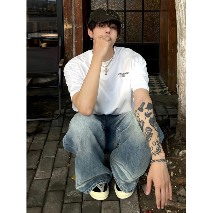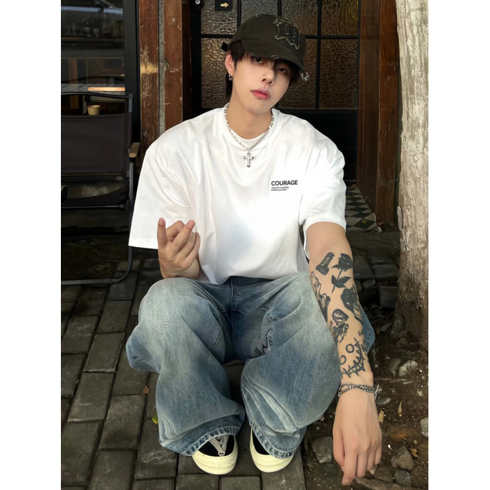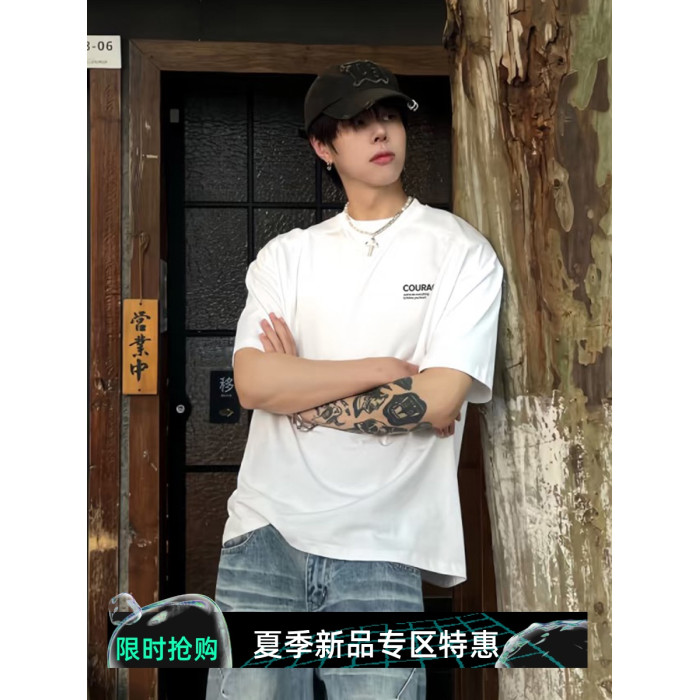 美式街頭潮牌字母印花男t恤2025新款短袖夏季寬松重磅半袖上衣tee