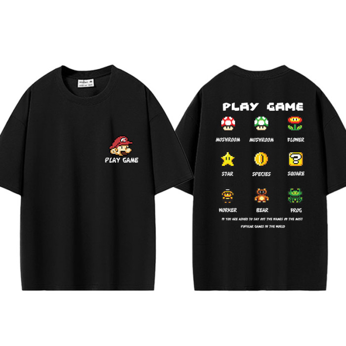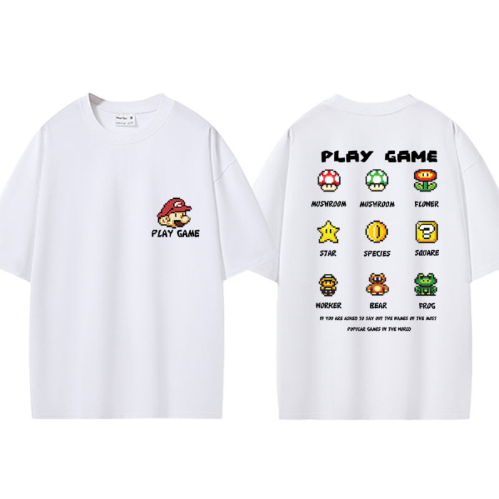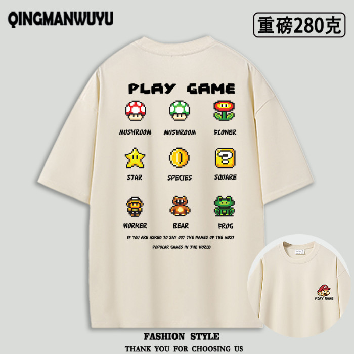 像素風卡通日系重磅oversize短袖男t恤女夏季馬裡奧tee半袖體恤潮