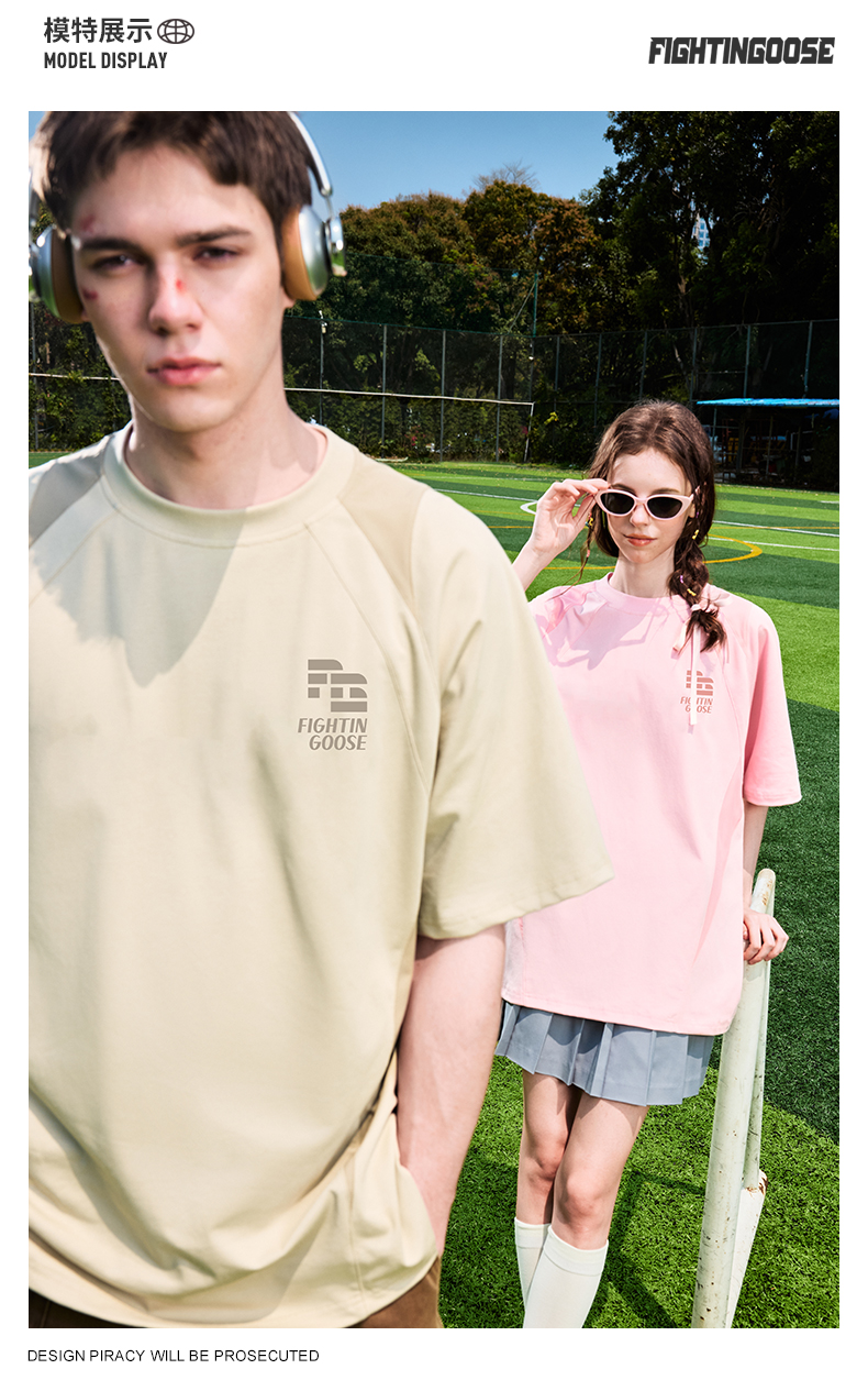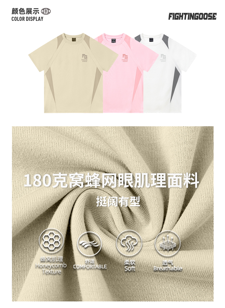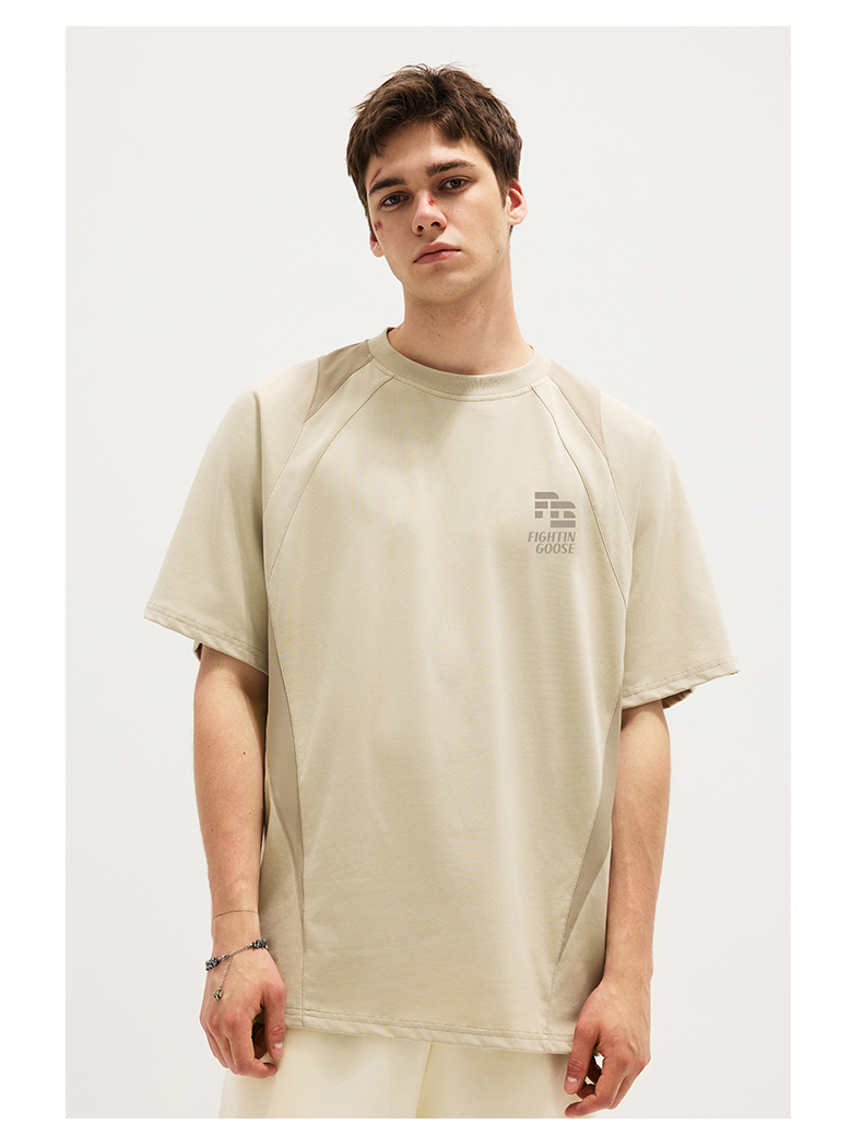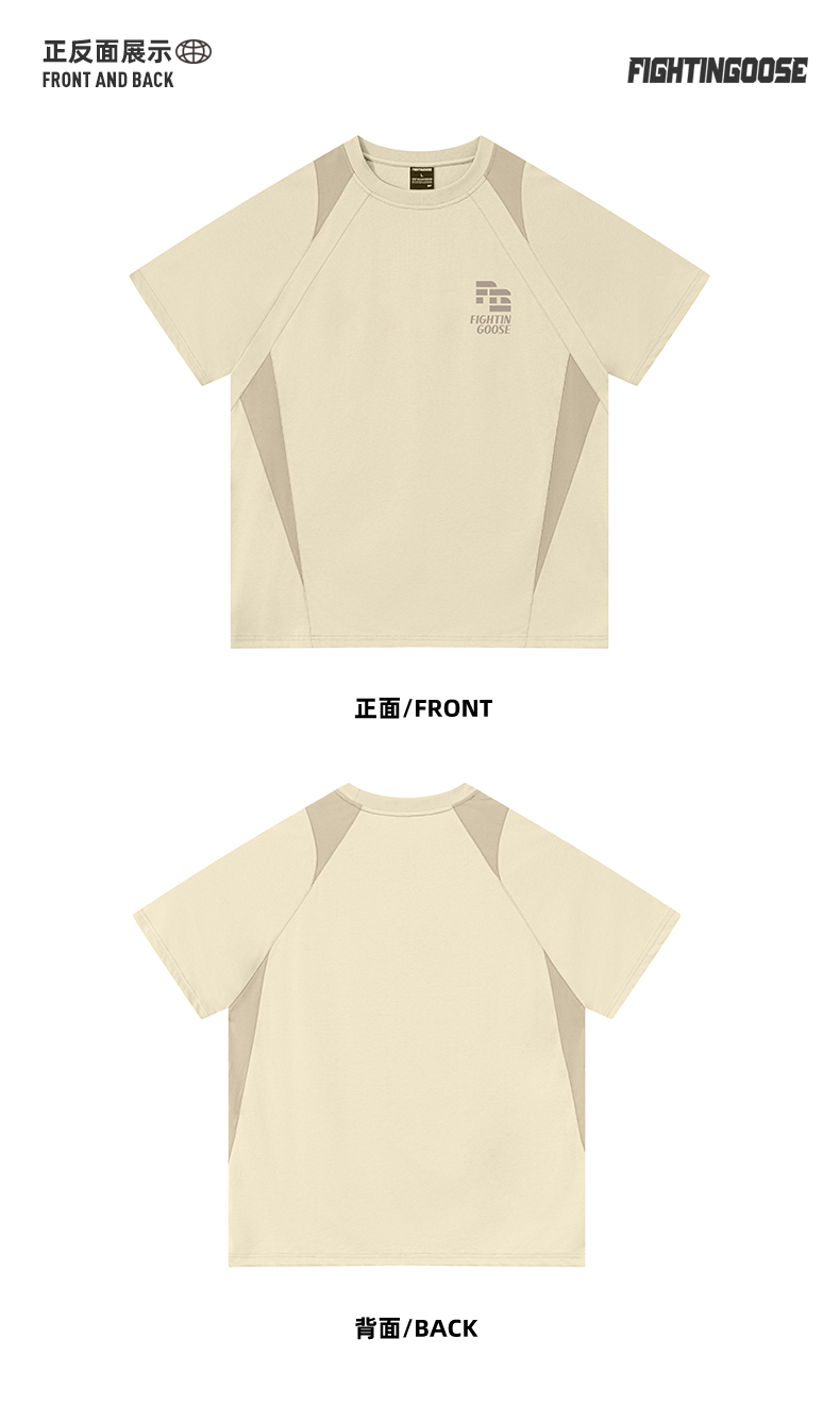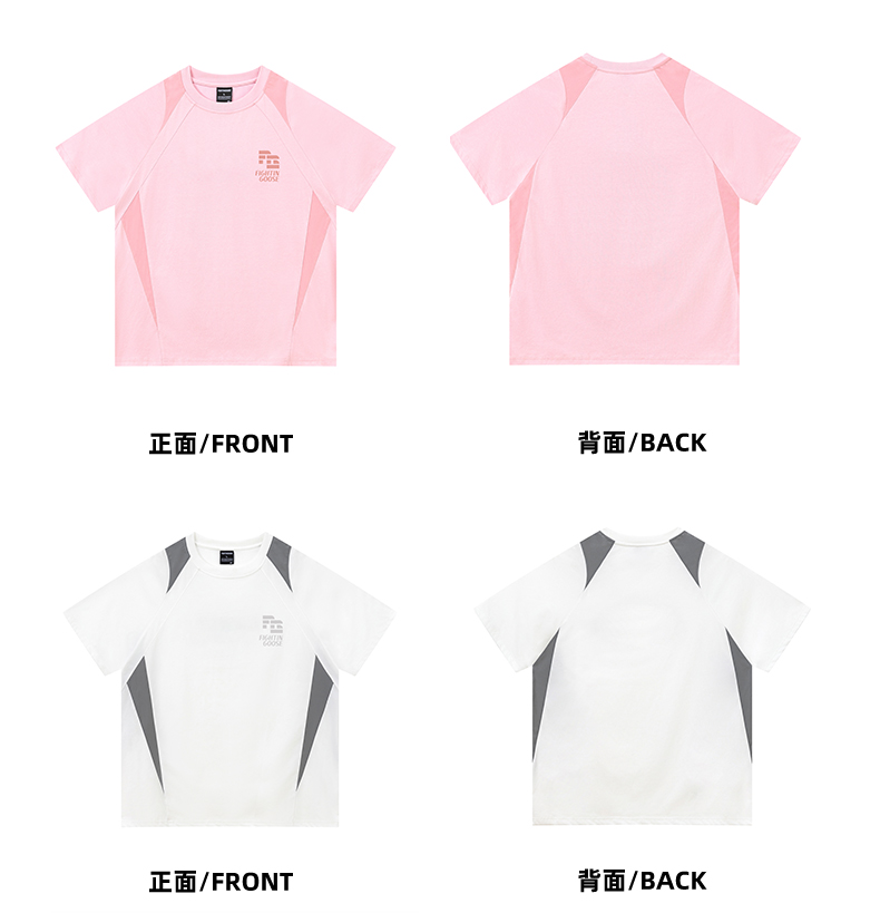 男生短袖肌理感運動上衣情侶裝速乾男t恤國潮拼接寬松美式穿搭t女