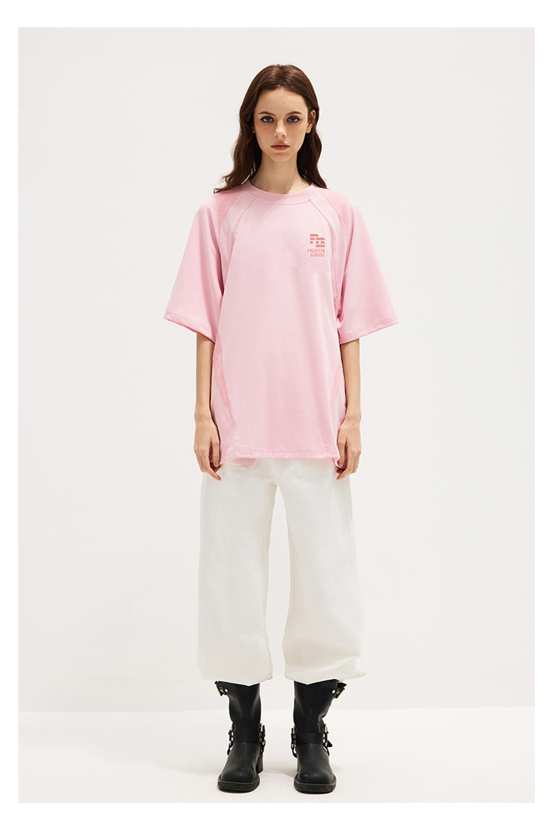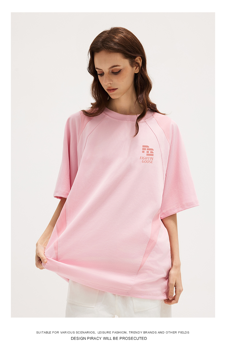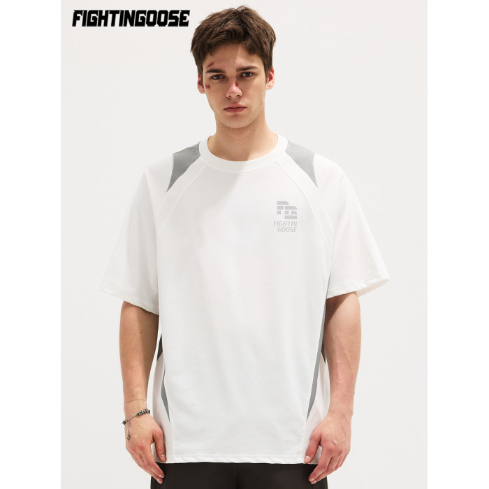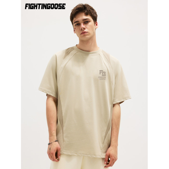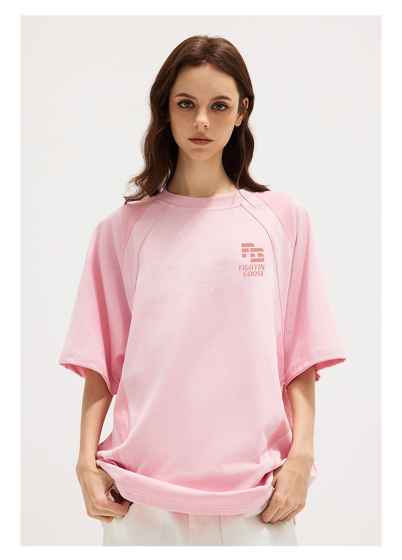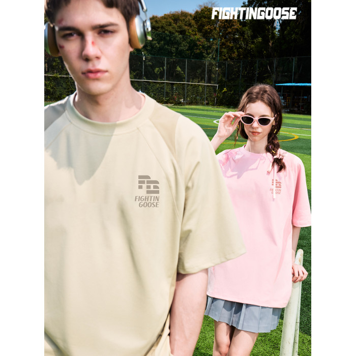 男生短袖肌理感運動上衣情侶裝速乾男t恤國潮拼接寬松美式穿搭t女