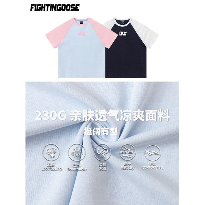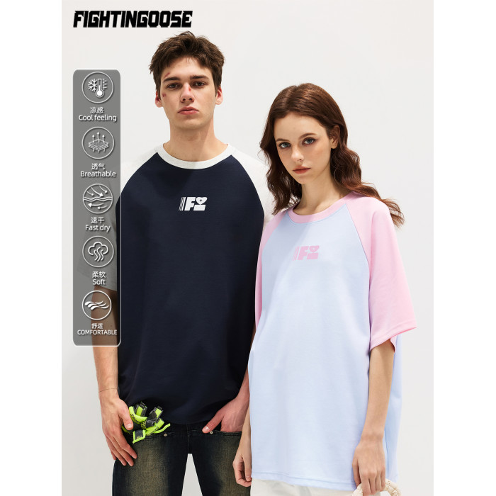 短袖男t恤2025新款涼感運動上衣情侶裝夏潮牌插肩袖拼接撞色半袖