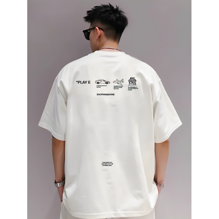 香港潮牌高品質白色純棉短袖男t恤夏季美式印花寬松休閒圓領半袖