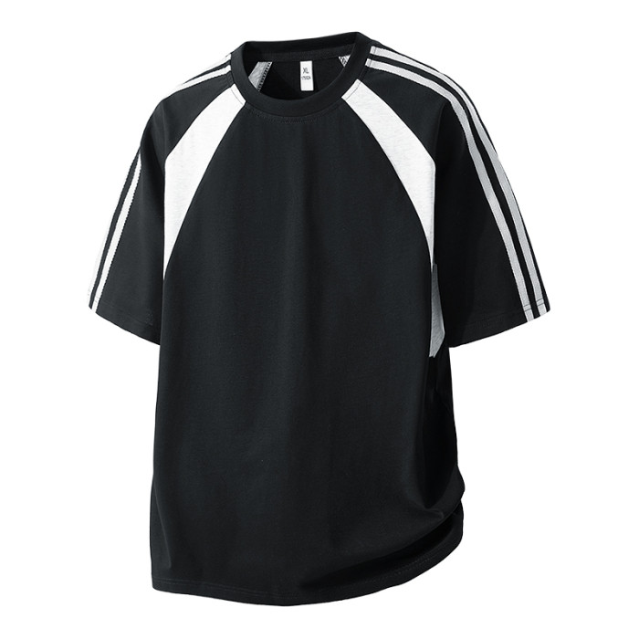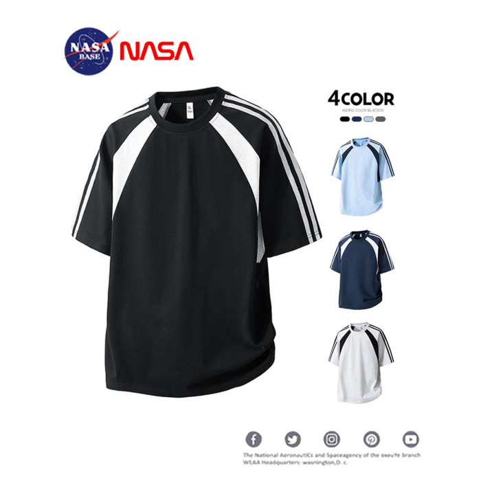 NASA短袖t恤男夏季潮牌輕薄半袖條紋體恤情侶休閒圓領拼接上衣服