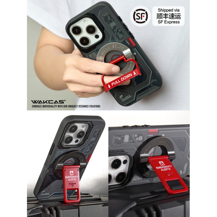 WAKCAS 緊急把手磁吸手機支架原創設計個性潮流旋轉支架金屬小衆磁吸支架鋁防掉支架適用小米14蘋果1516全系