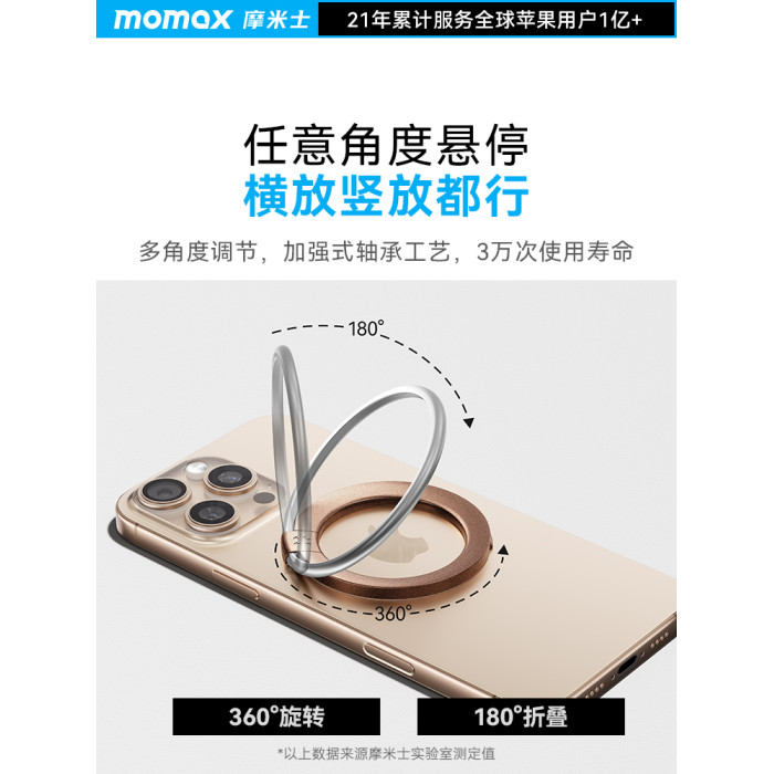 MOMAX摩米士磁吸手機支架指環扣可攜式可折曡旋轉超薄桌面支撐架背貼殼指環支架2025新款適用蘋果iphone16華爲