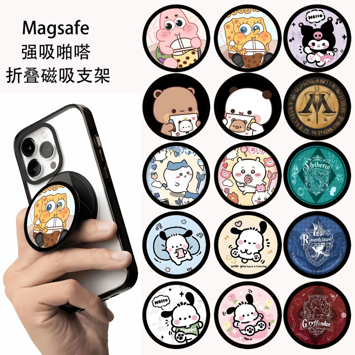 Magsafe啪嗒可愛chiikawa吉伊卡哇磁吸手機支架折曡伸縮Q版帕恰狗