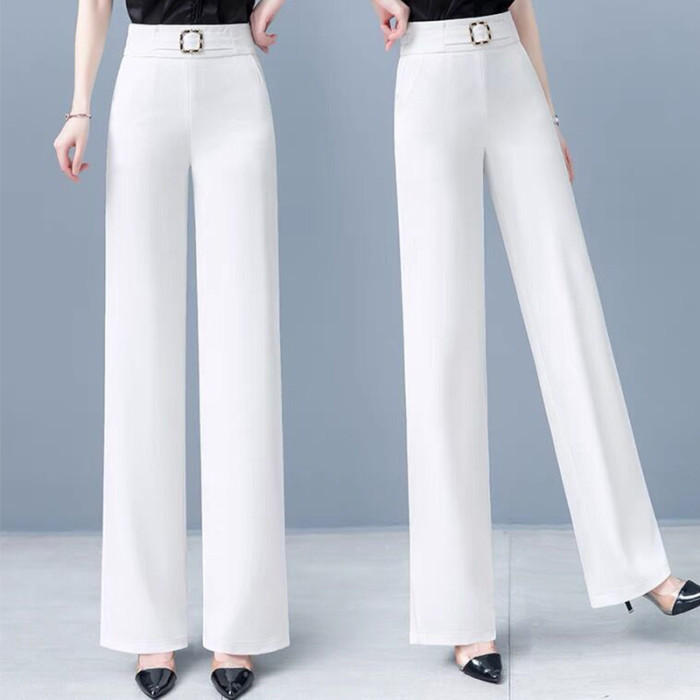 窄版濶腿西裝褲女夏季2025新款休閒高腰寬松直筒冰絲垂感長褲薄款
