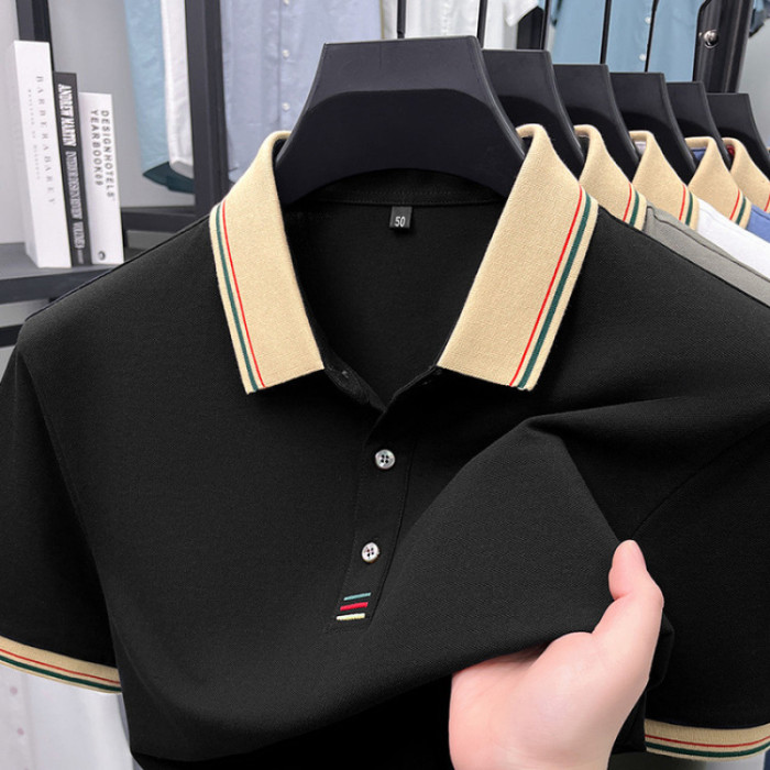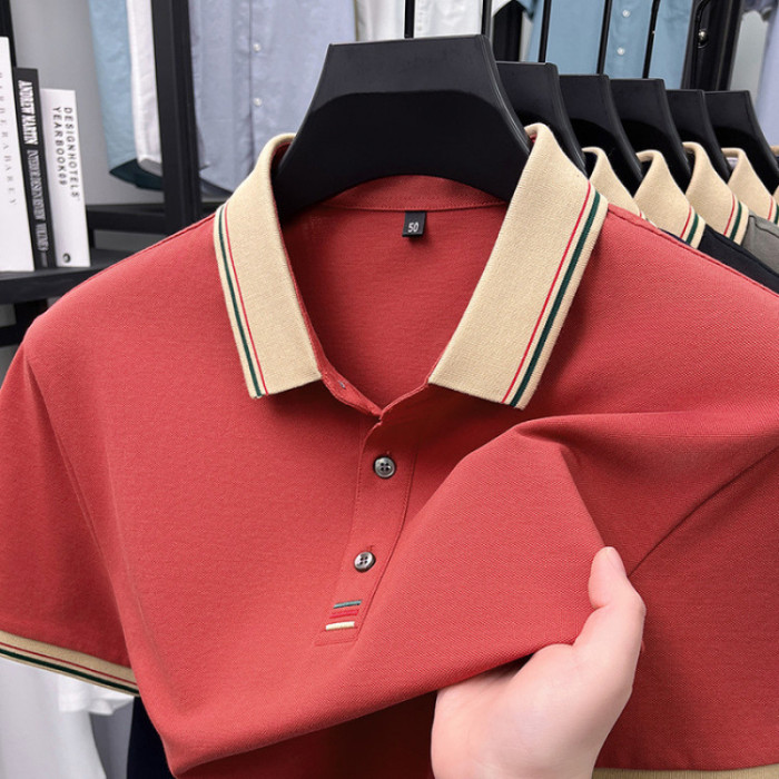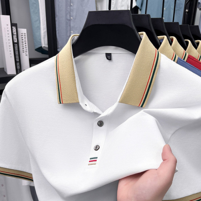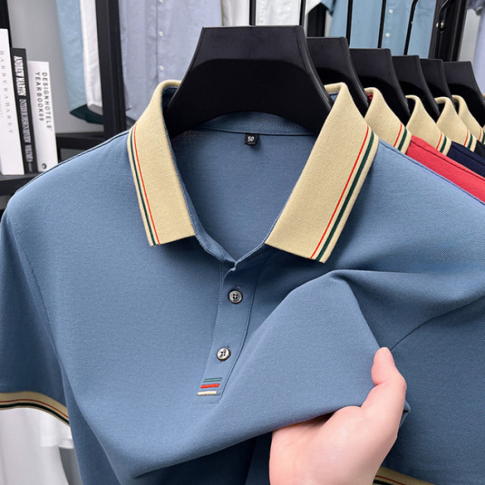 2025夏翻領95絲光柔珠棉男裝體恤POLO衫休閒純棉有帶領短袖男T恤
