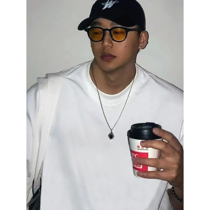 潮牌美式復古短袖男t恤夏季歐美高街hiphop純色純棉半袖圓領上衣