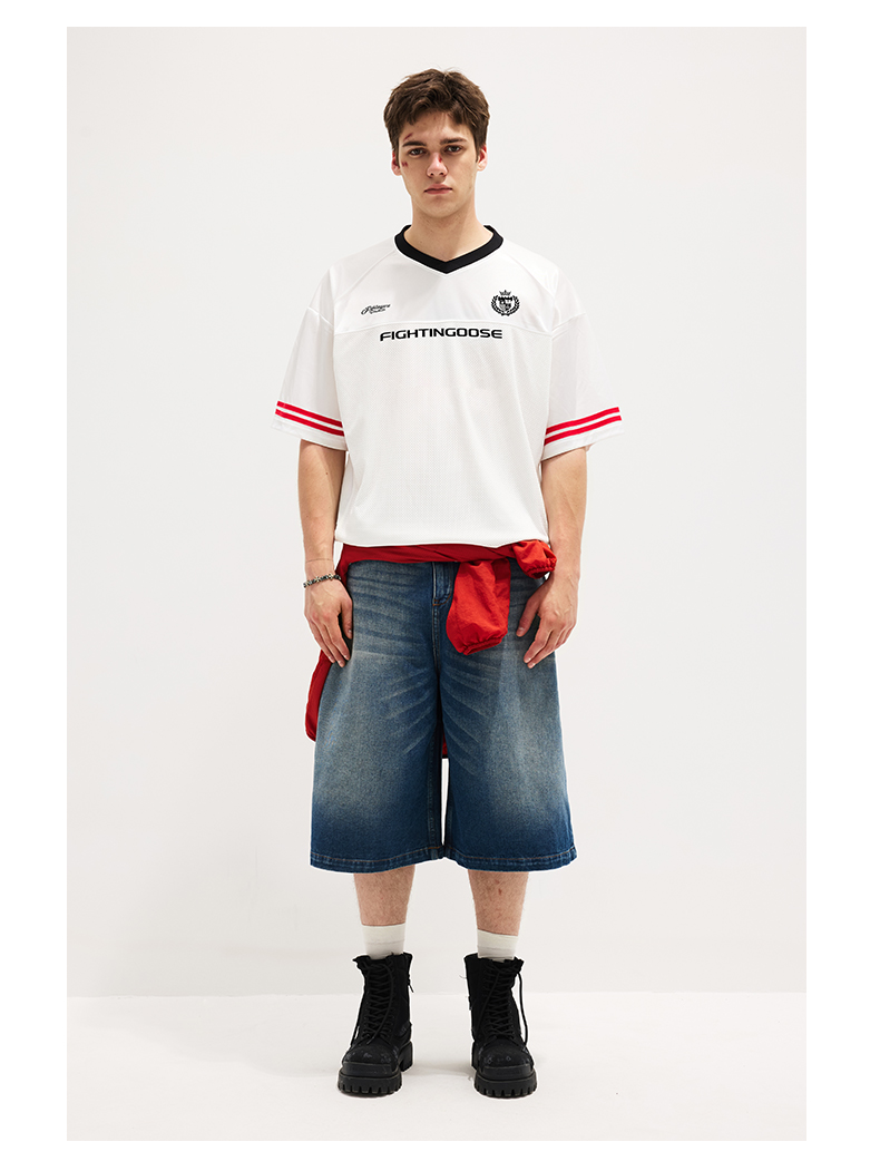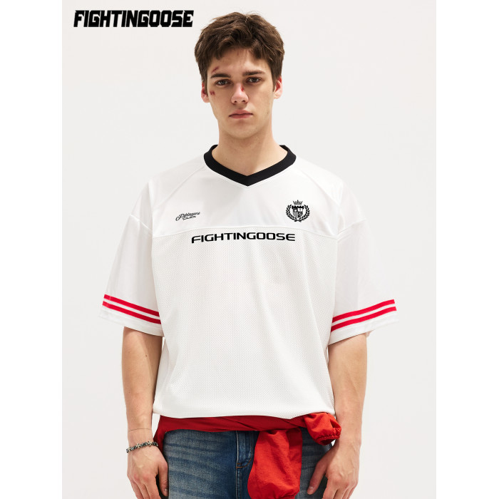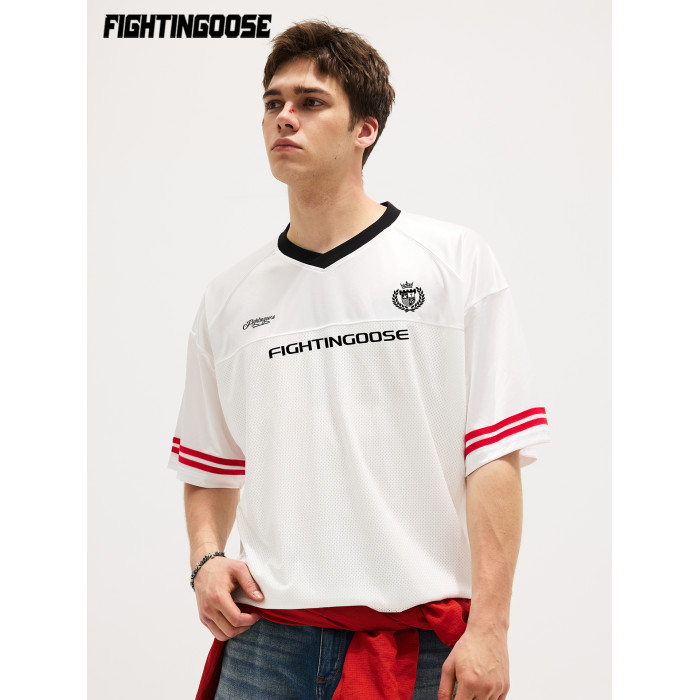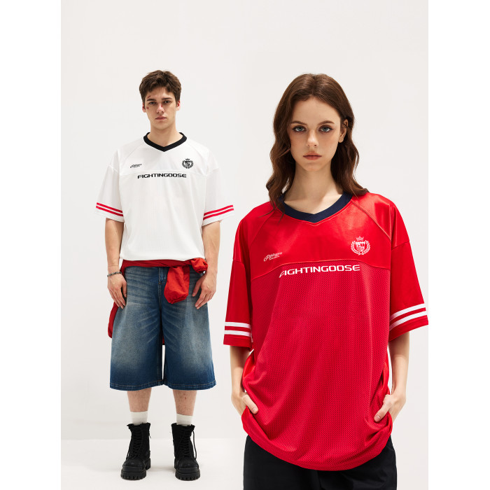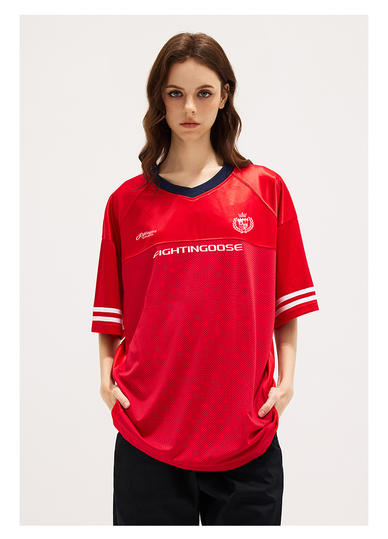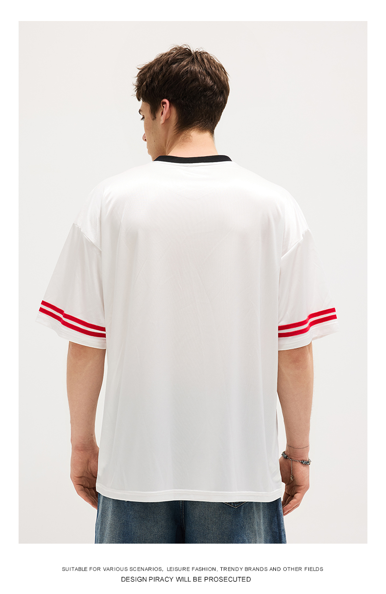 夏季男生短袖美式穿搭速乾男t恤運動上衣網眼拼接寬松情侶裝半袖