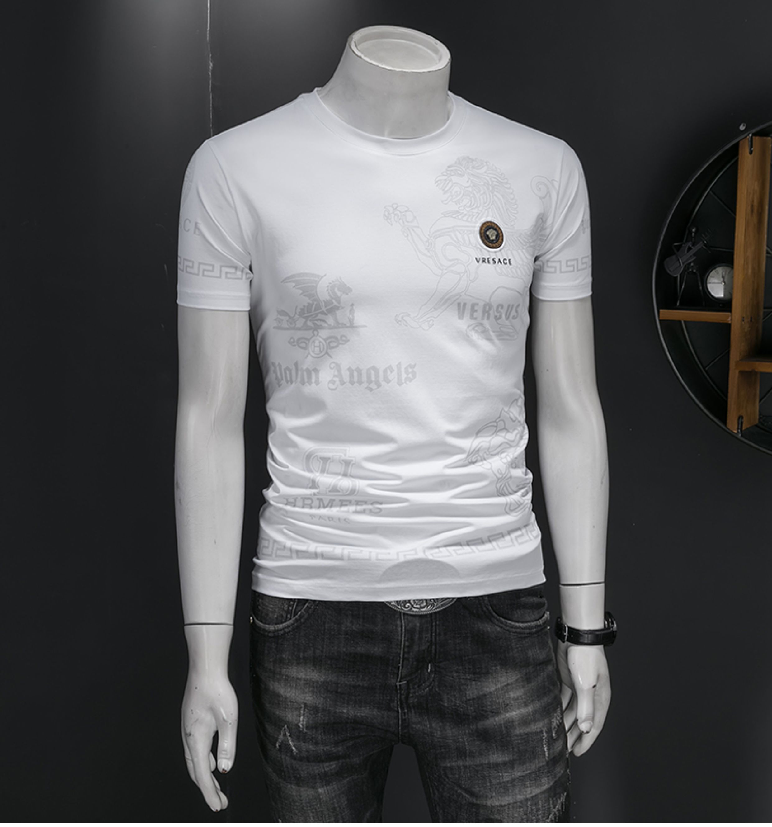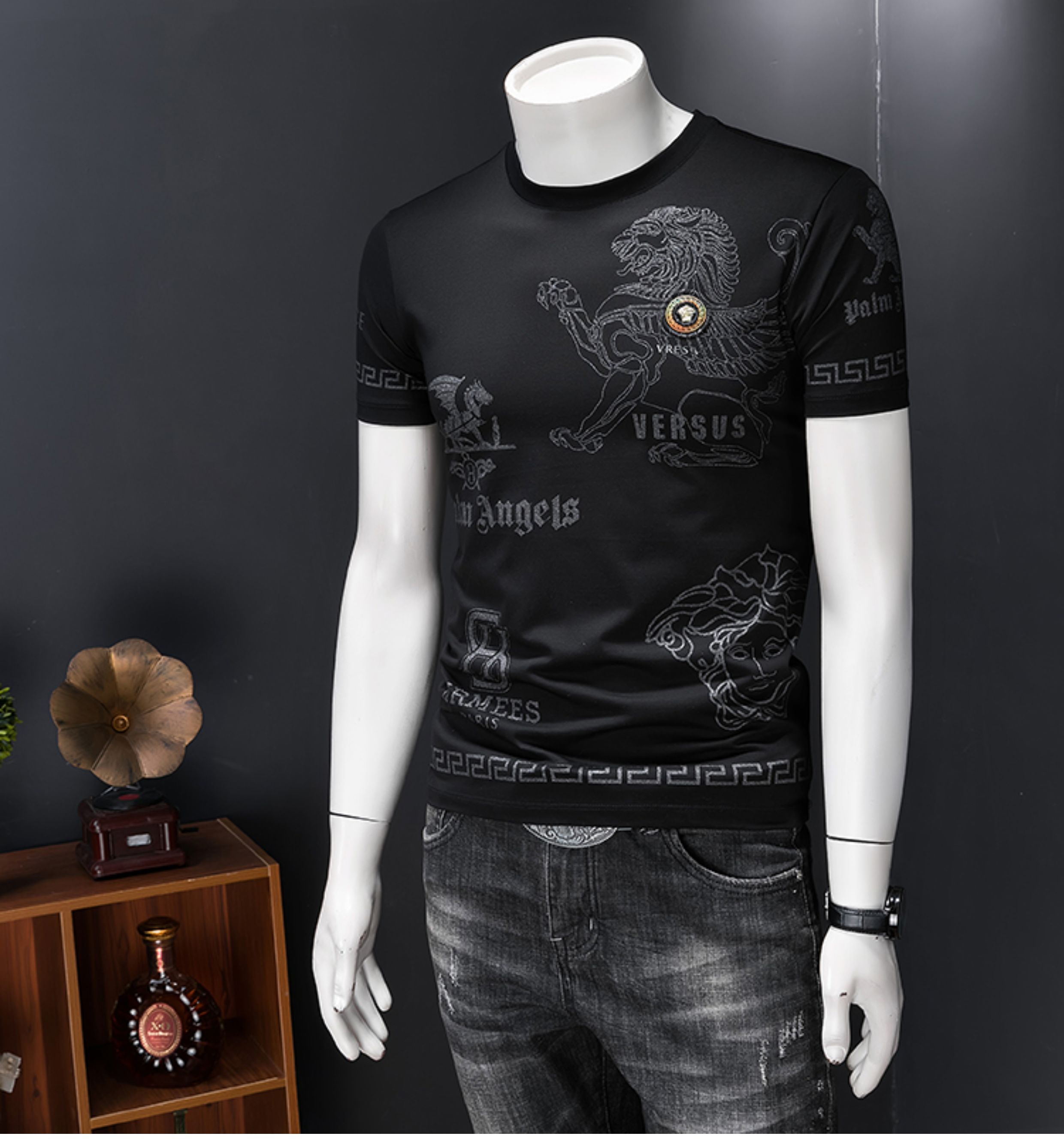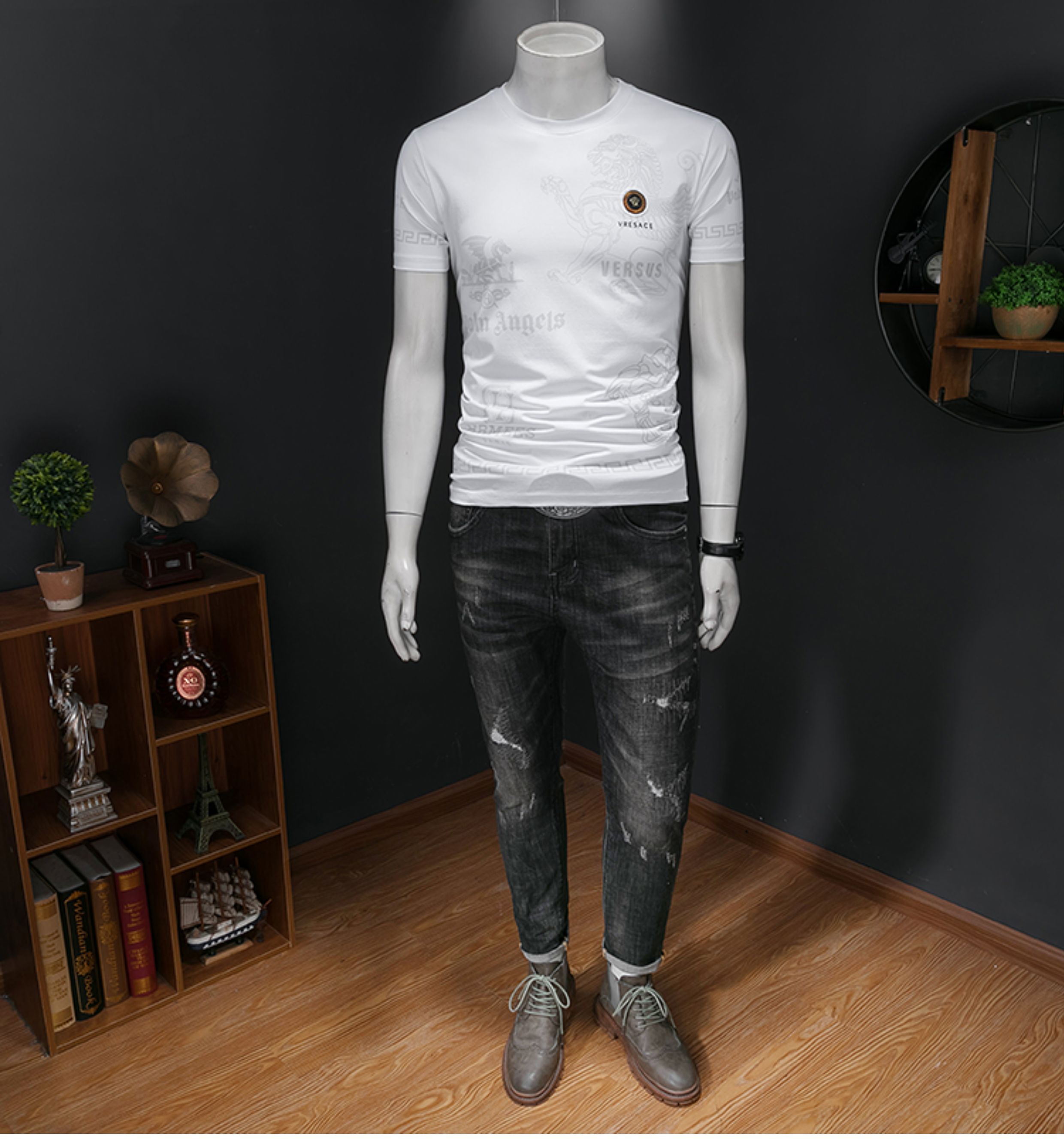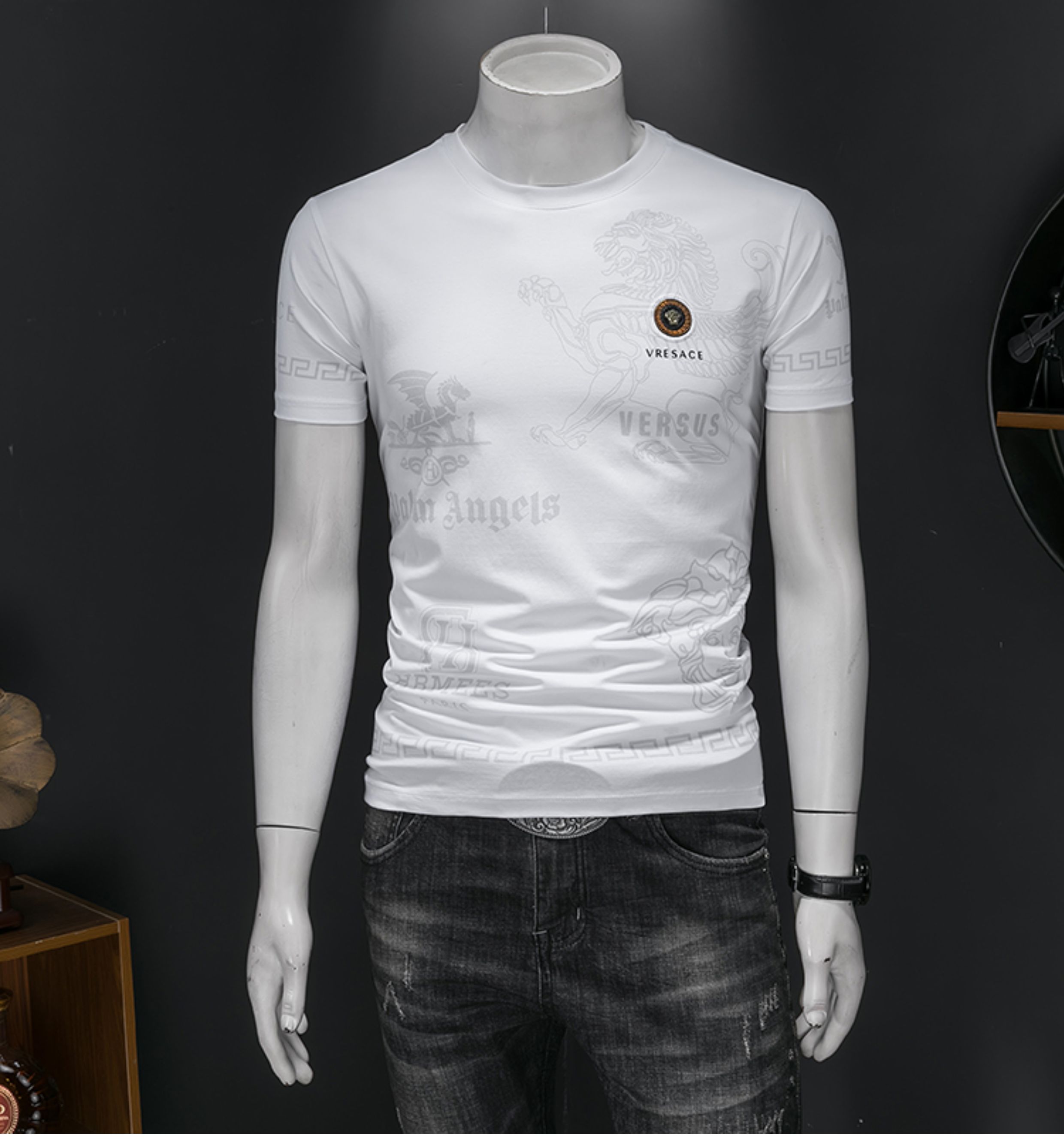歐貨潮牌短袖男t恤2025新款夏季潮流修身打底衫高級提花半袖體恤