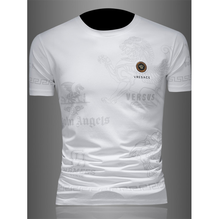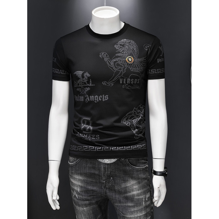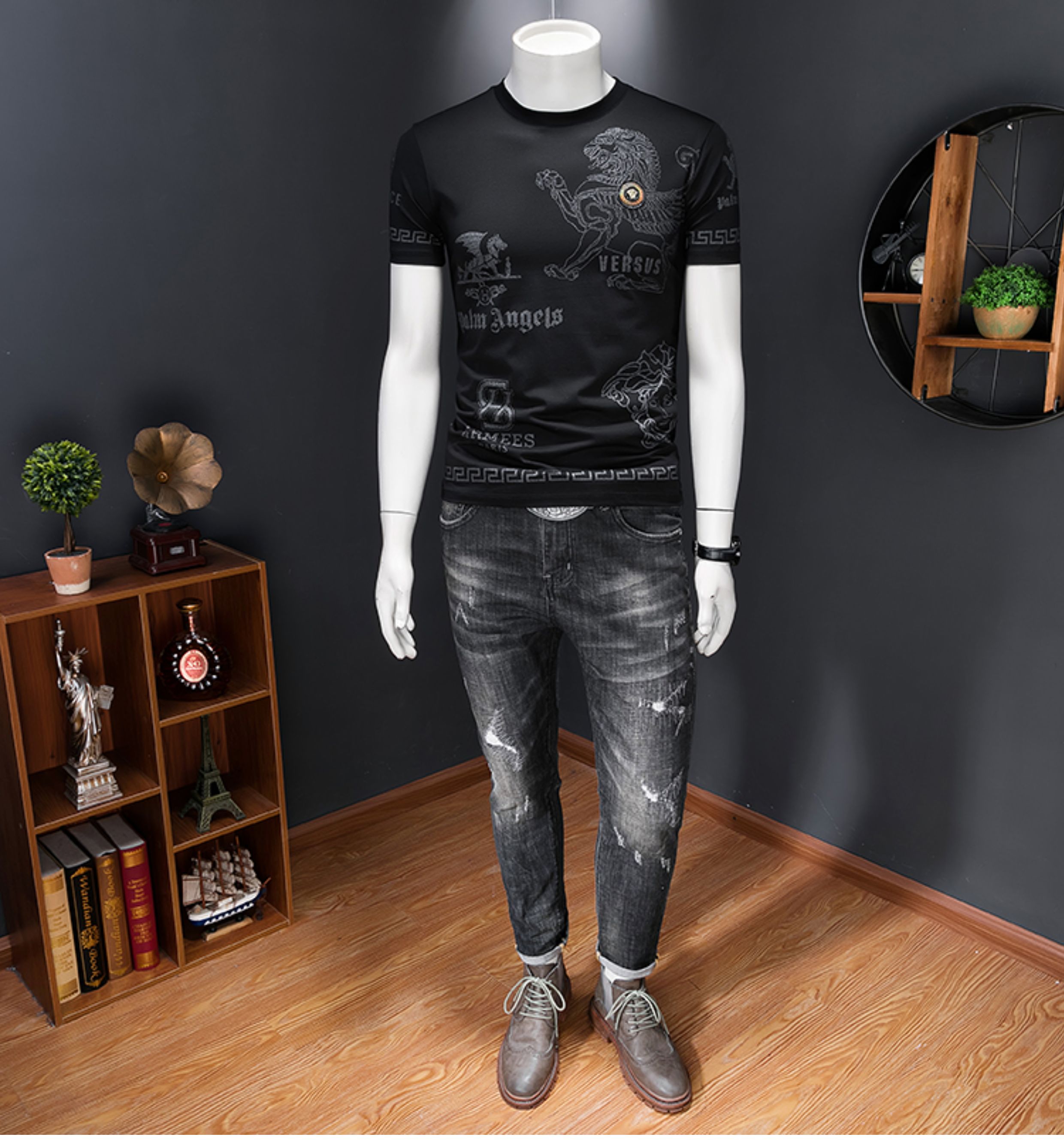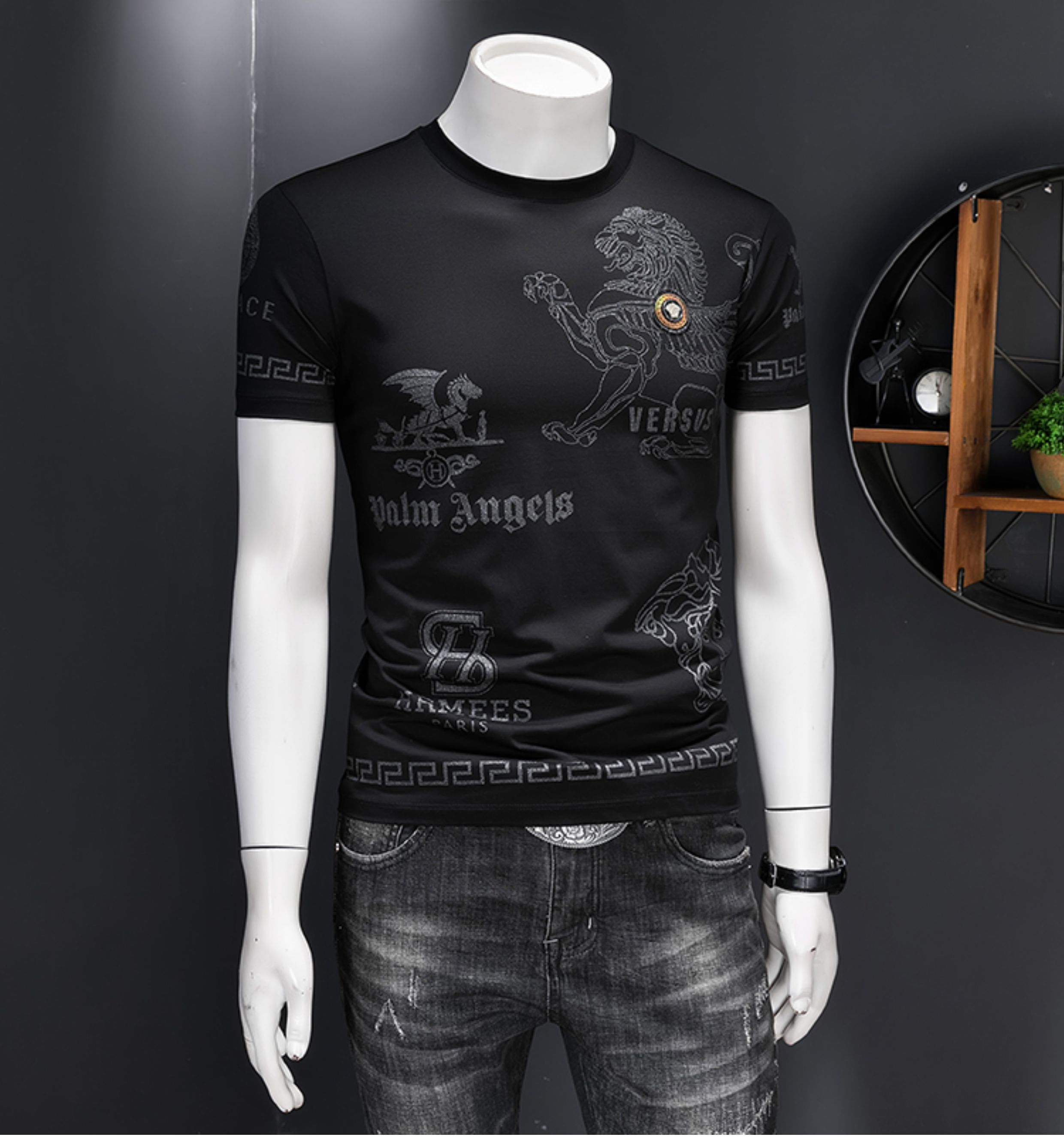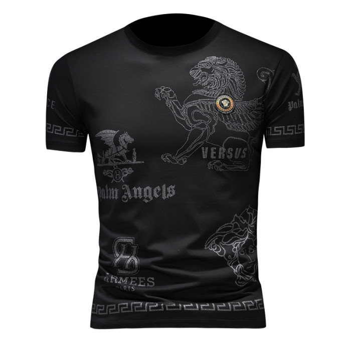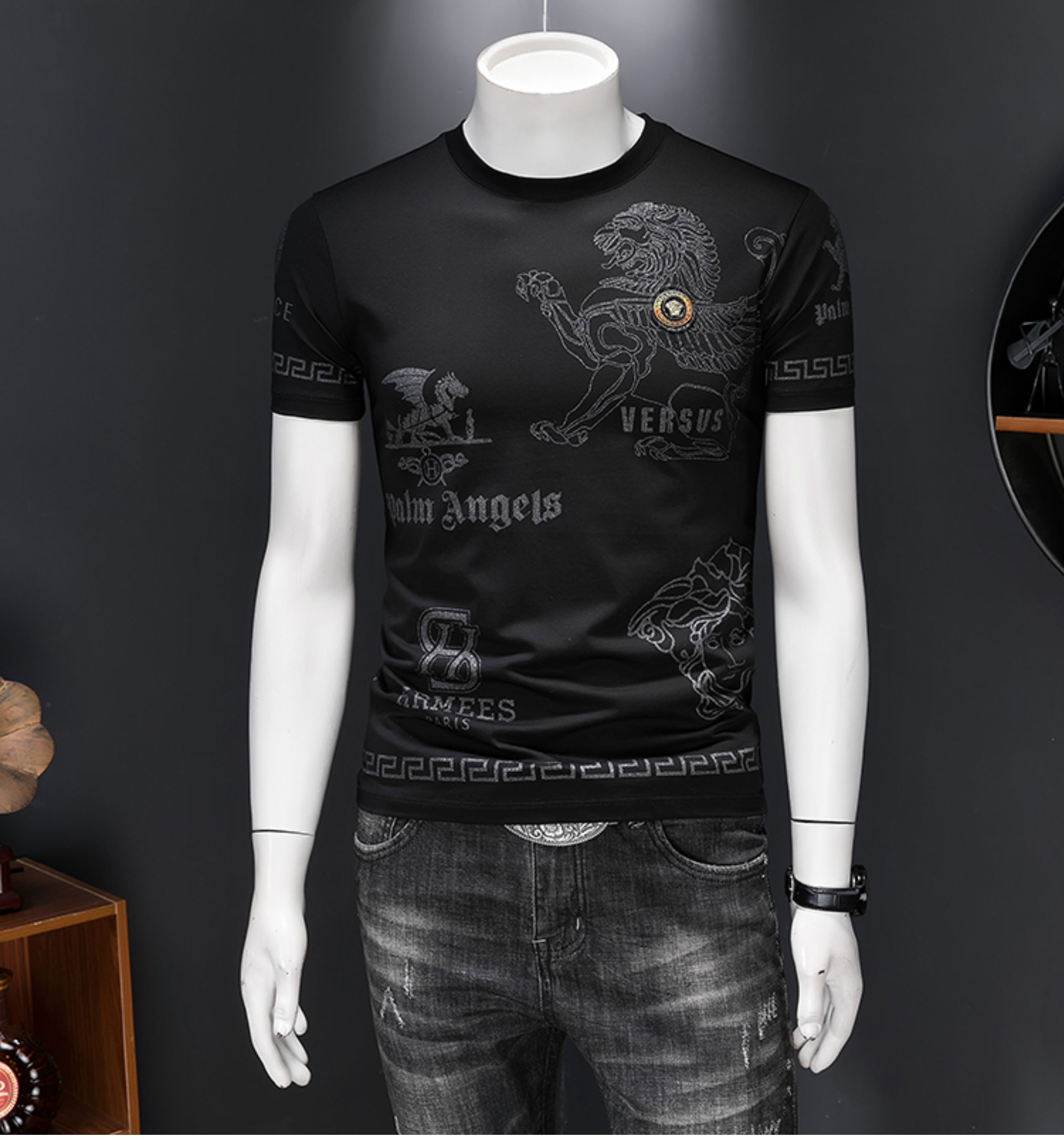 歐貨潮牌短袖男t恤2025新款夏季潮流修身打底衫高級提花半袖體恤