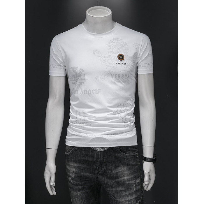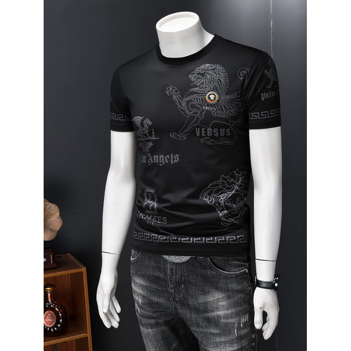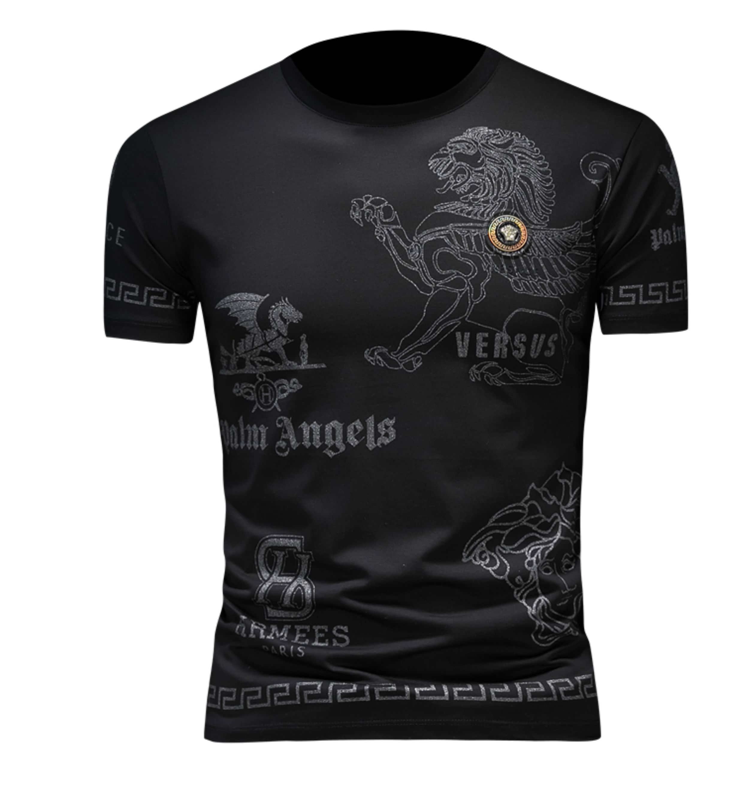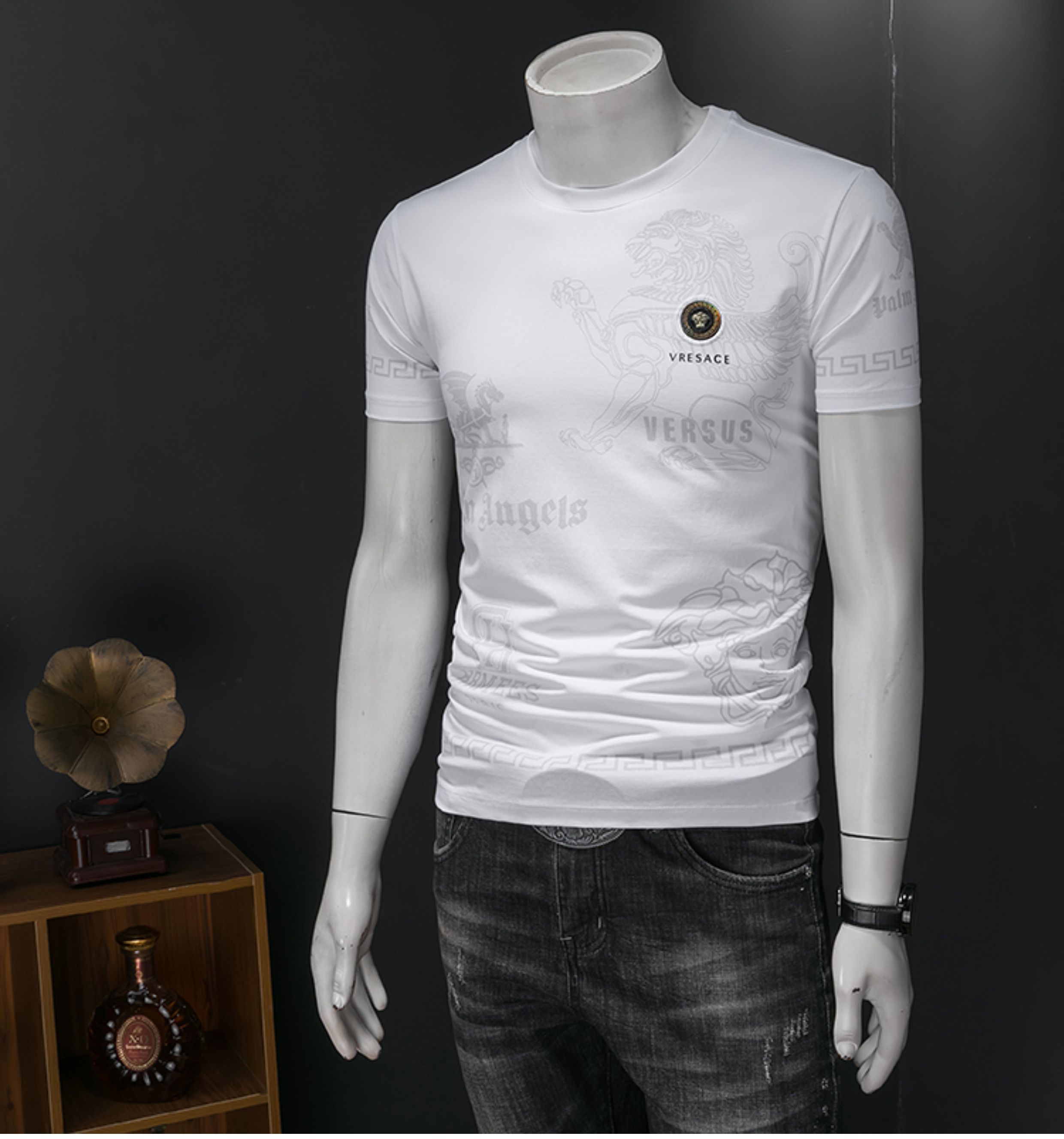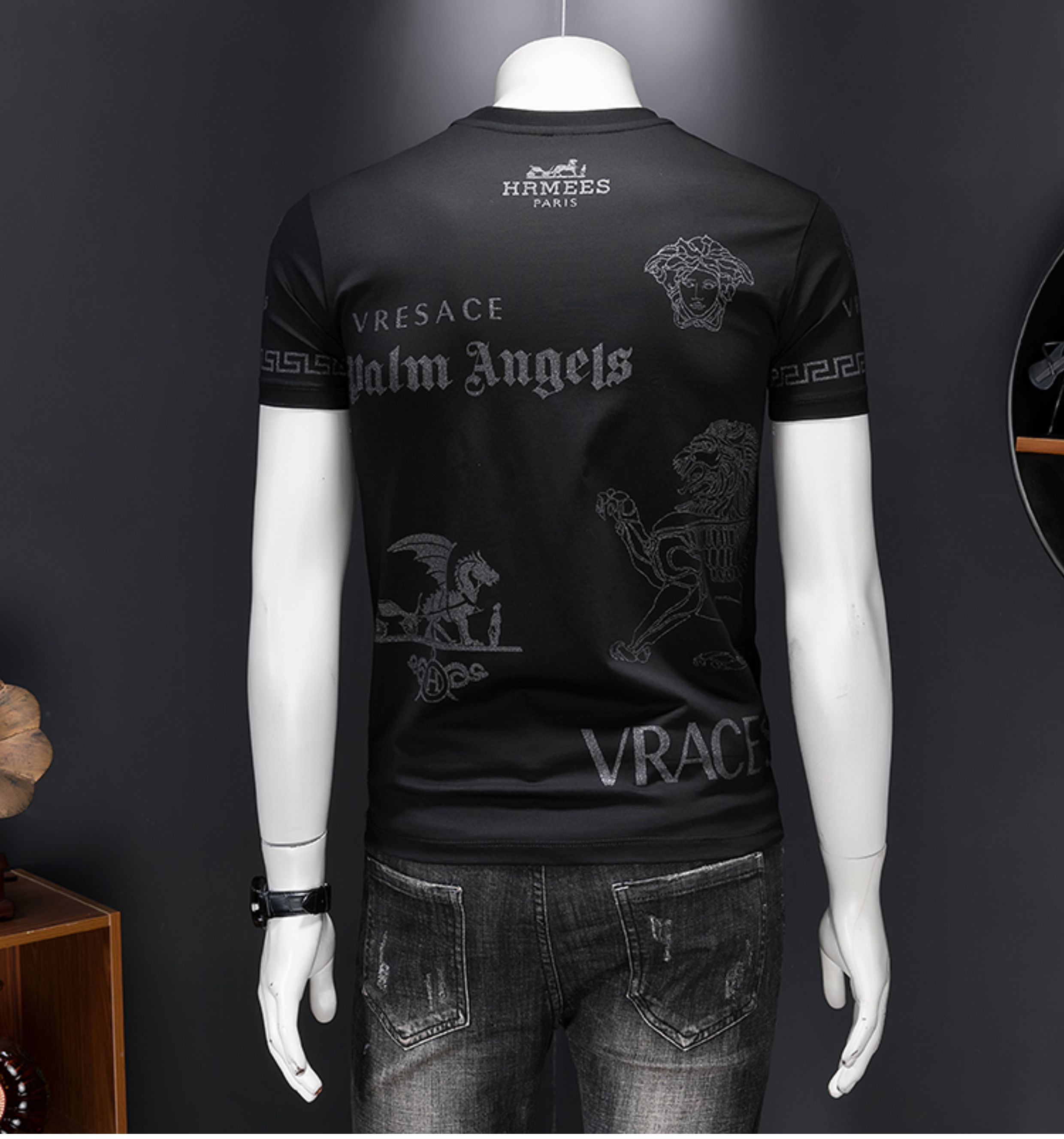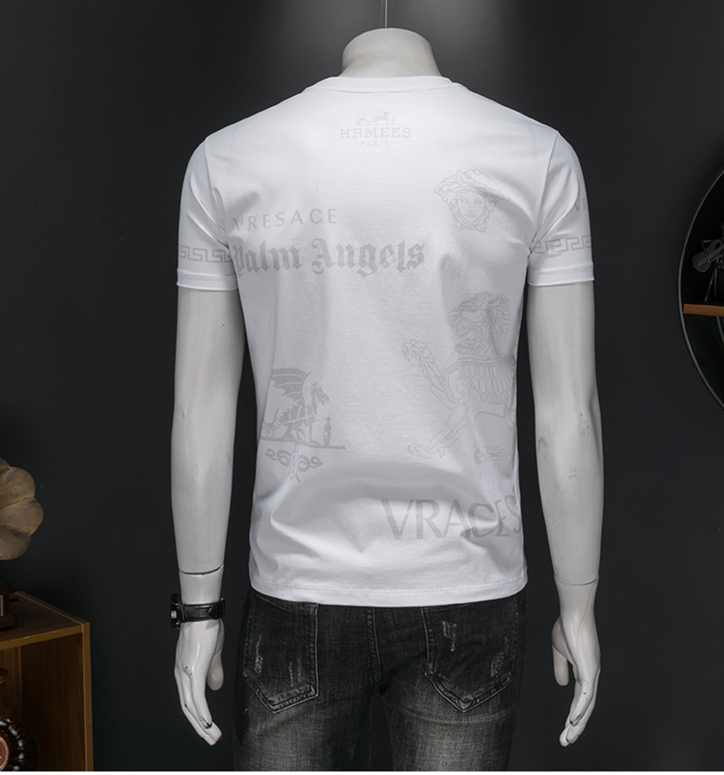歐貨潮牌短袖男t恤2025新款夏季潮流修身打底衫高級提花半袖體恤