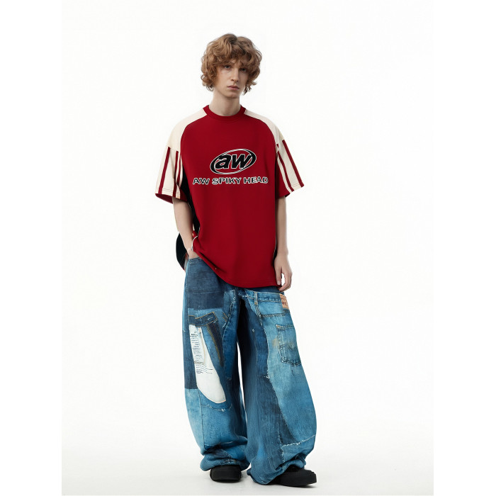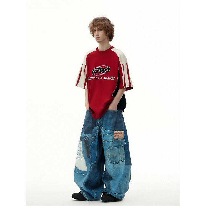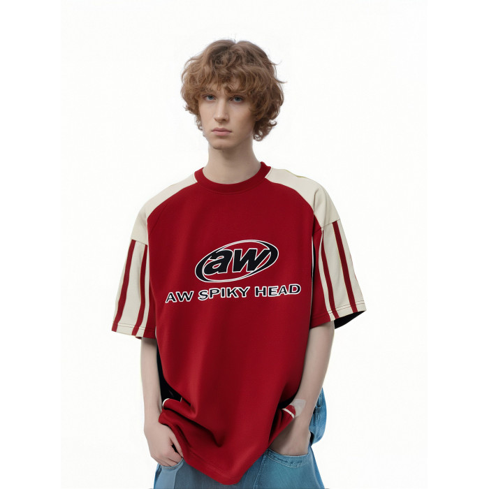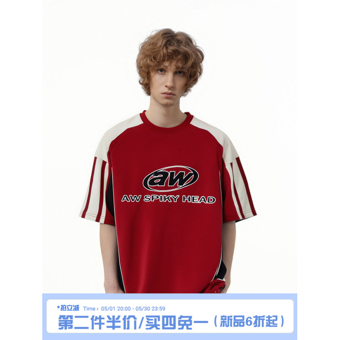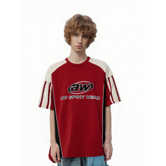 DASONJRINCE*美式復古拼接運動賽車風短袖男T恤設計寬松oversize