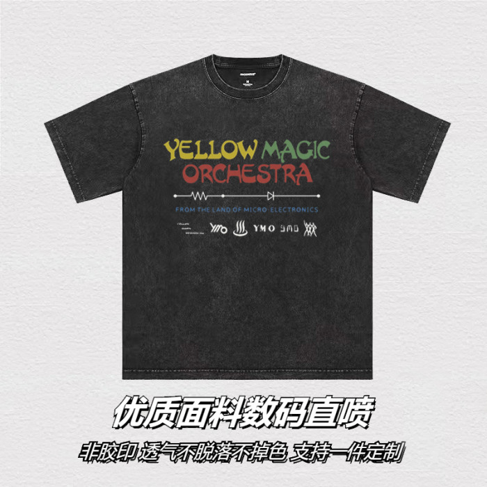 YMO坂本龍一短袖細野晴臣電子音樂字母純棉重磅水洗復古落肩男T恤