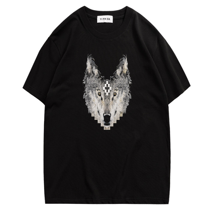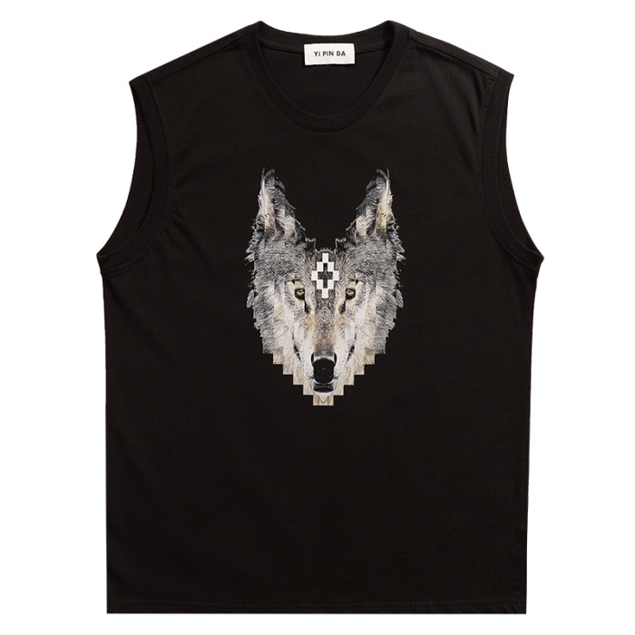 Kornit康麗直噴狼頭印花潮牌男裝棉背心情侶款高街寬松短袖男T恤