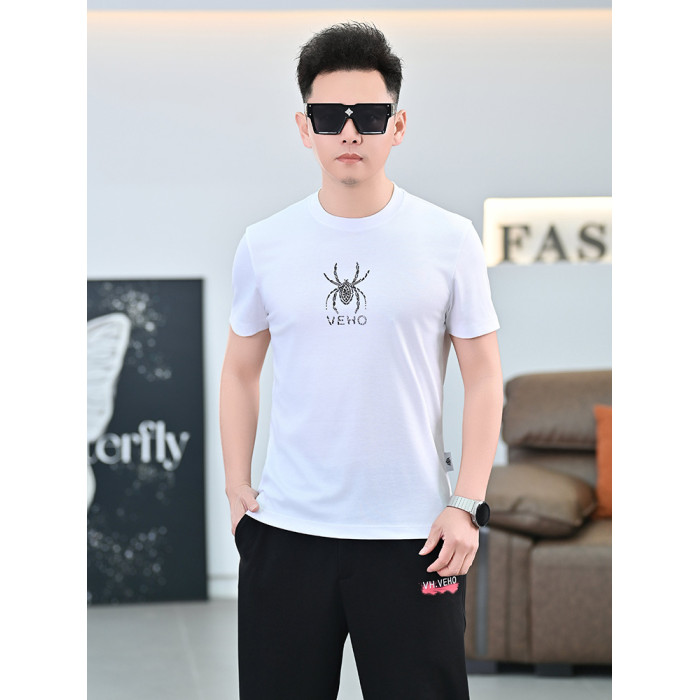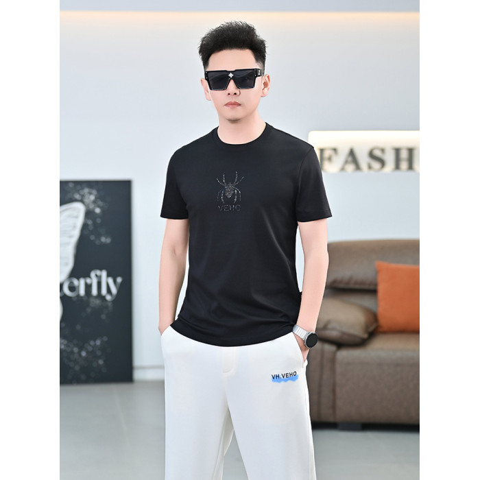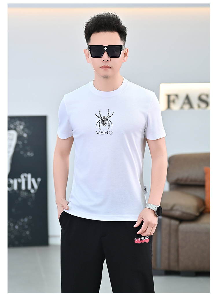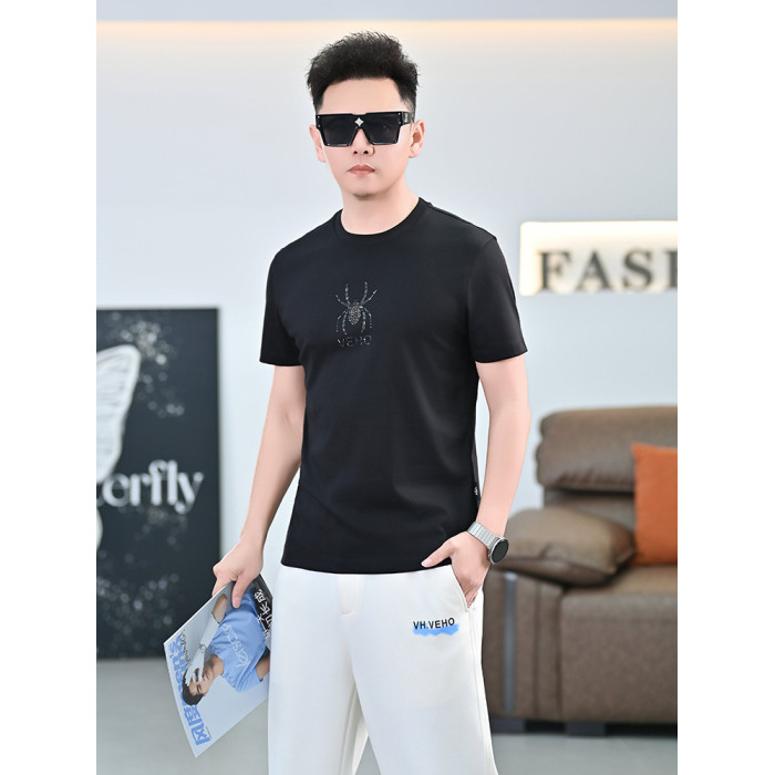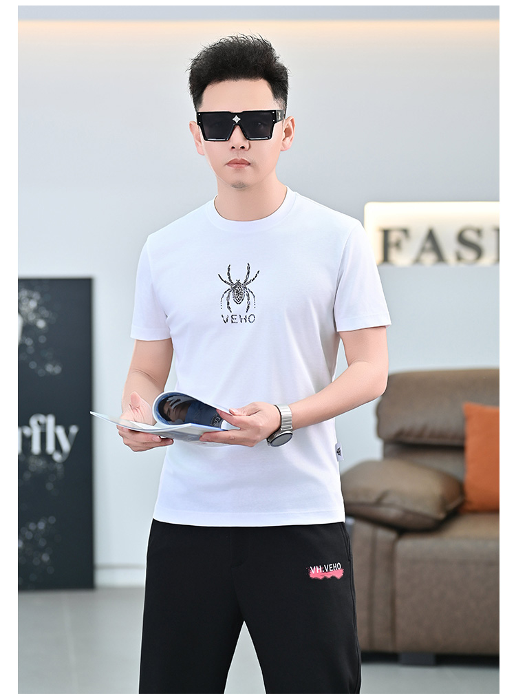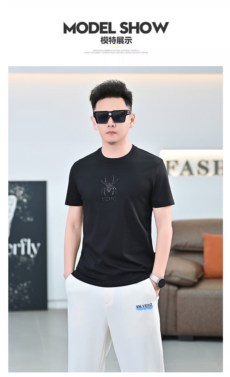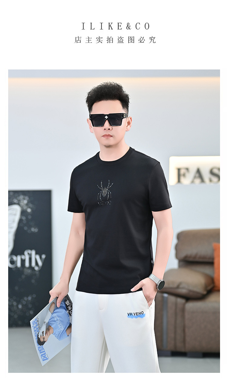 品質歐貨夏季新款男T恤圓領短袖潮牌小衆設計個性百搭鑲鑽上衣男