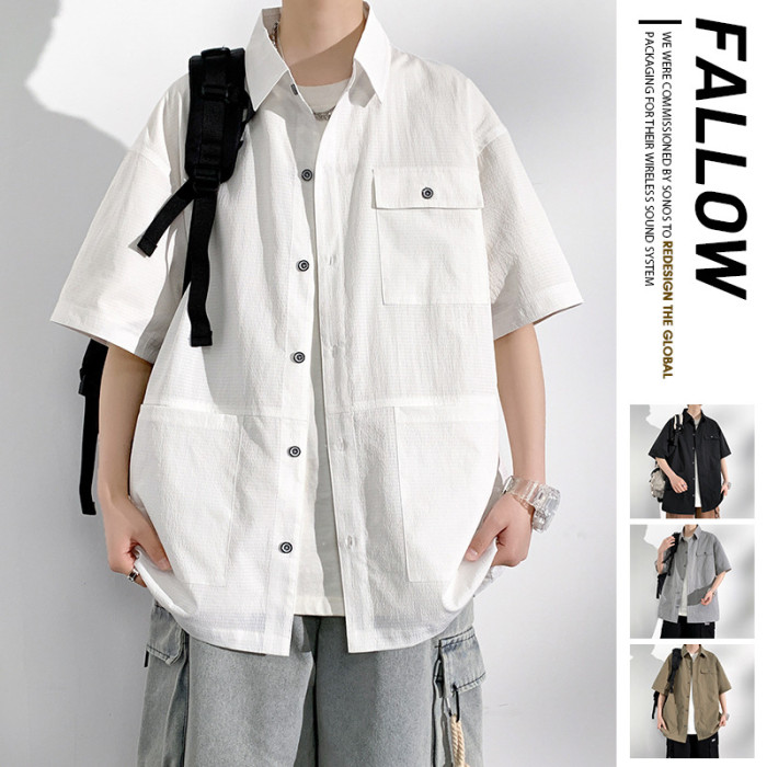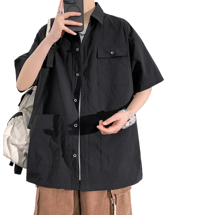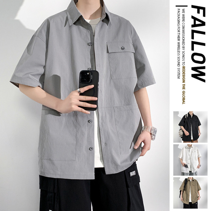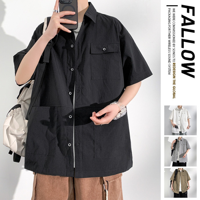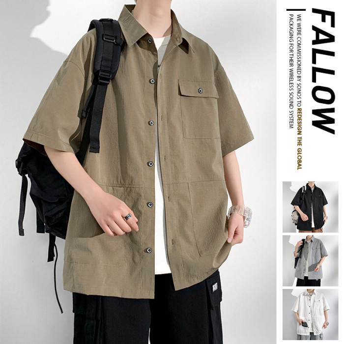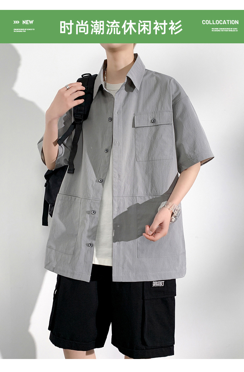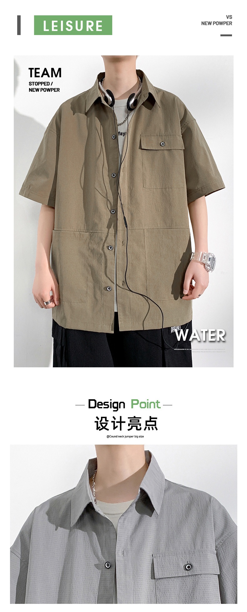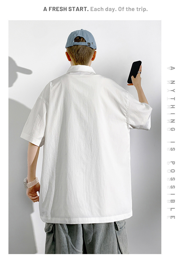 男士t恤短袖襯衫純色大碼t恤男短袖男t恤短袖襯衫T恤翻領寬松型