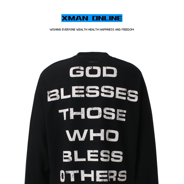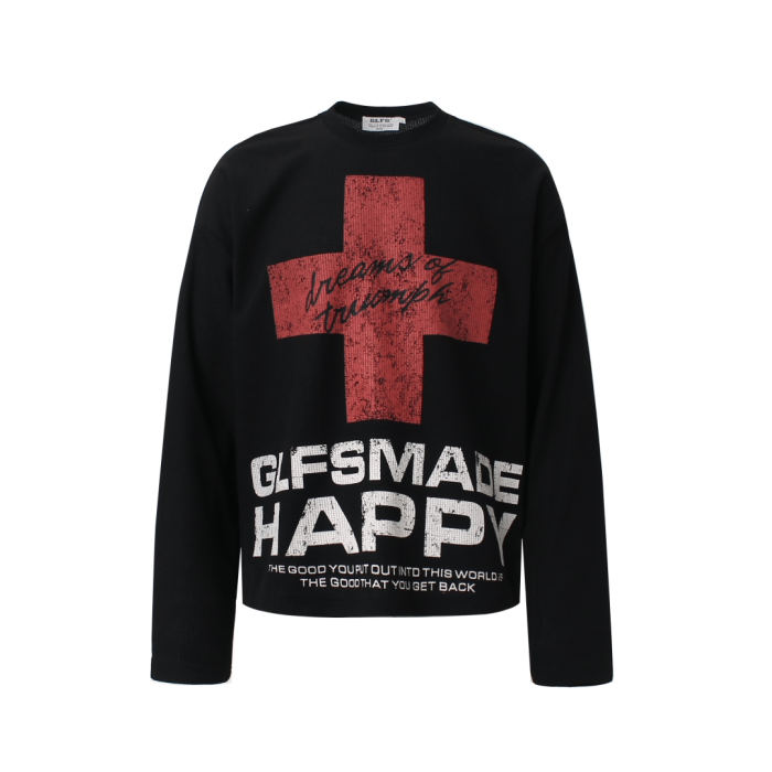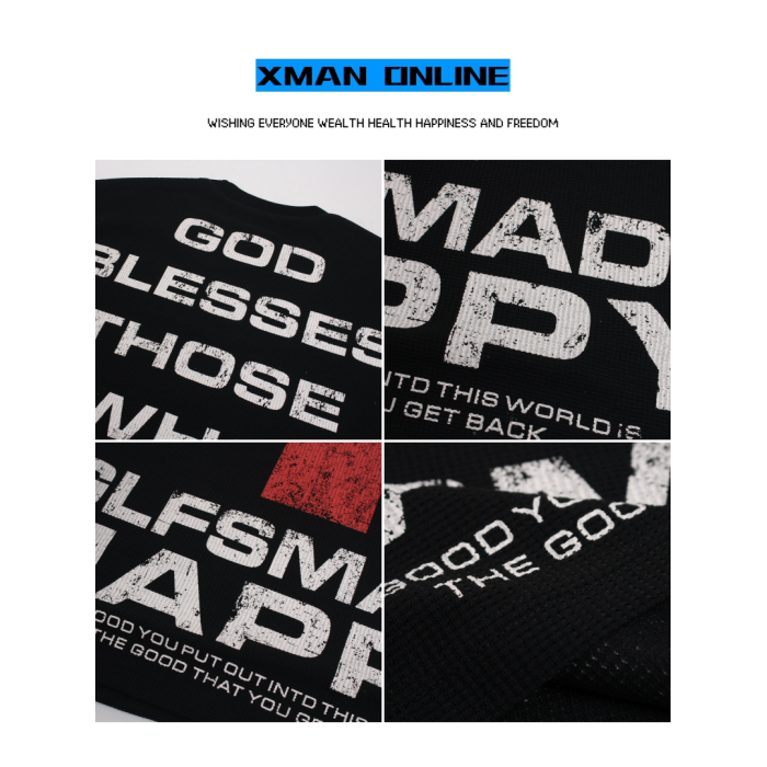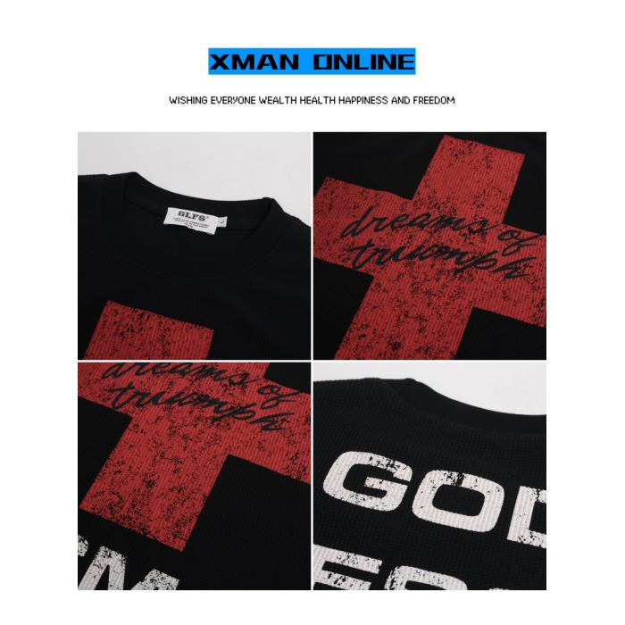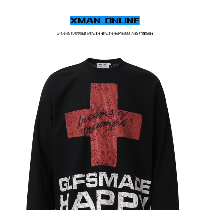 Xman秋季美式嘻哈街頭十字架印花長袖男t恤寬松hiphop個性上衣tee