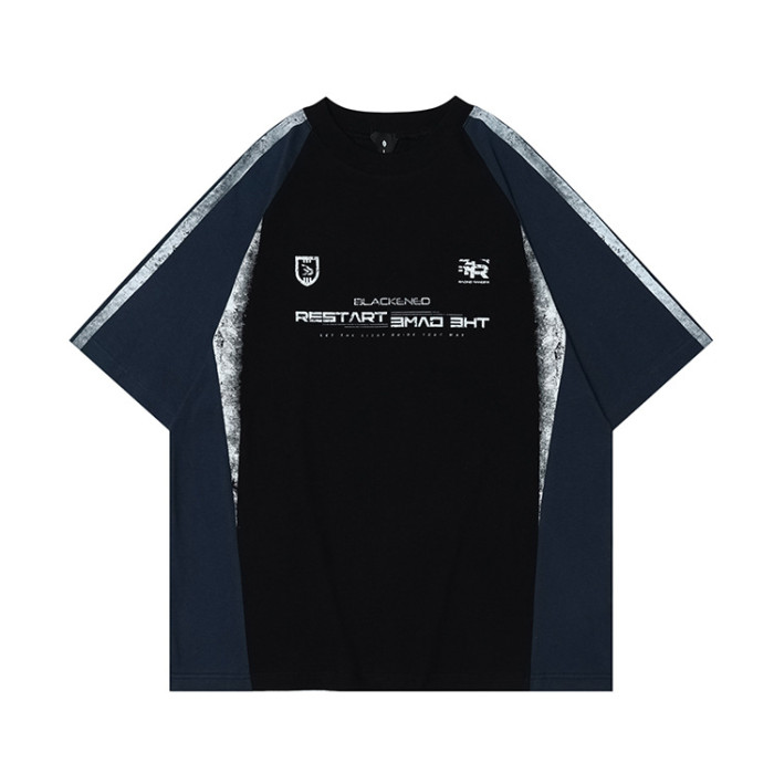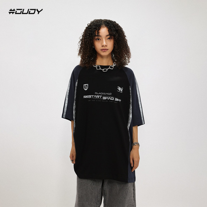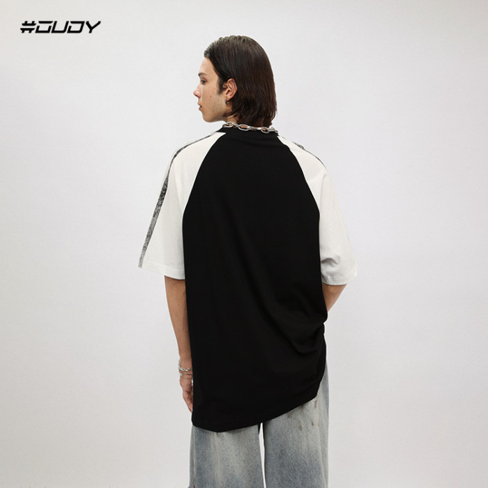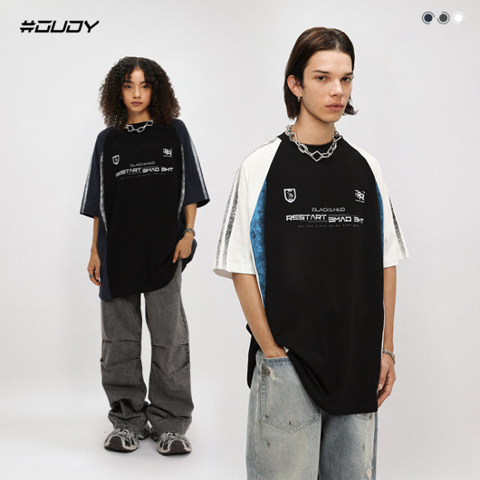 #OVDY 2024新款青少年男t恤撞色拼接精梳棉機能百搭半袖男女潮牌