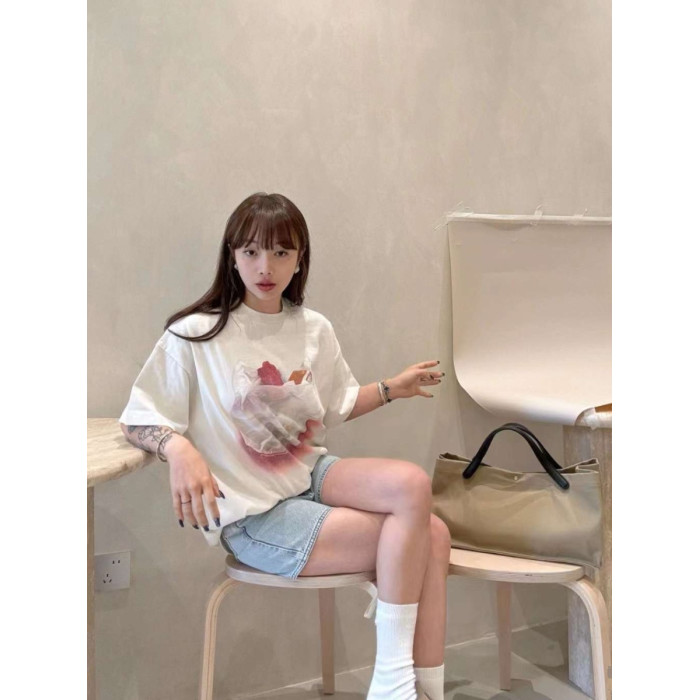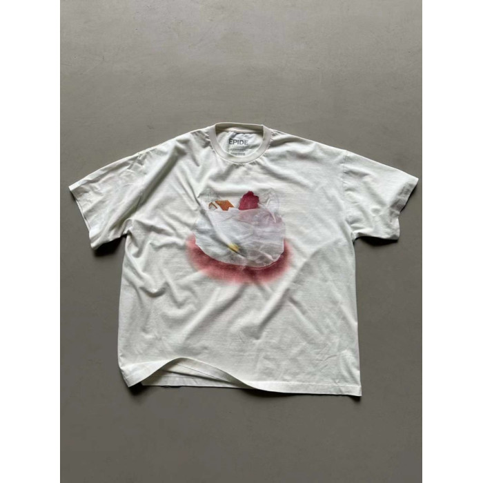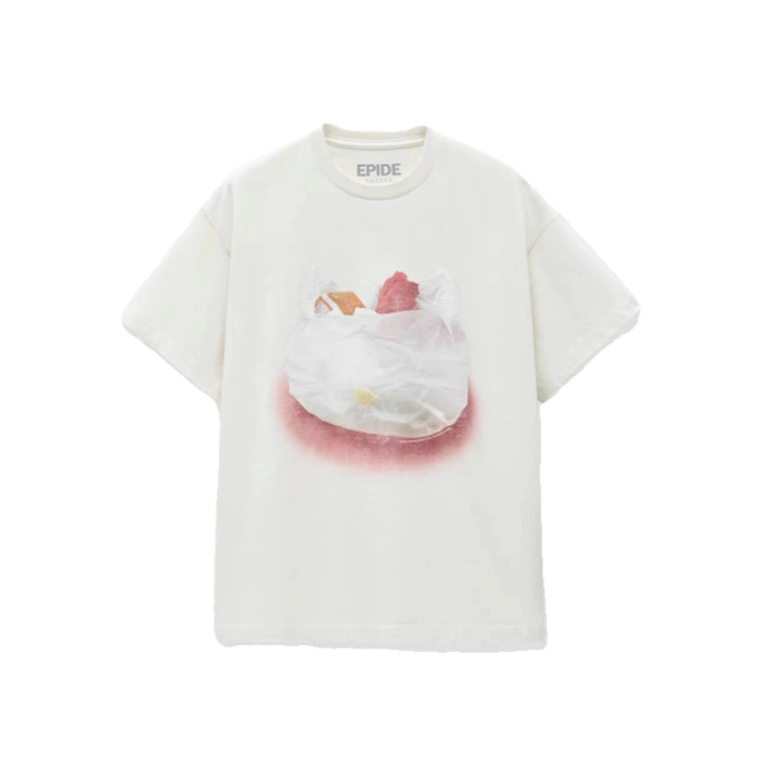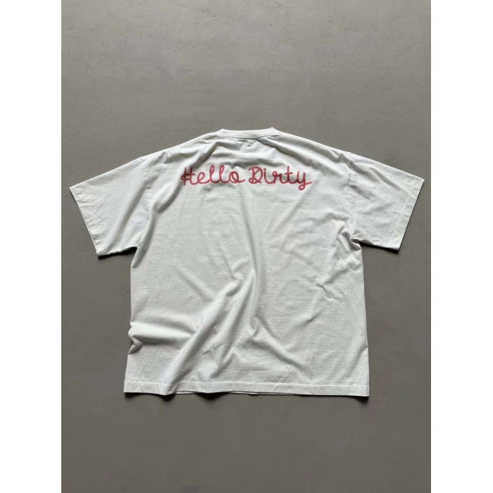 Epide Prefab水洗做舊復古潮流Kitty貓印花白色寬松男T恤短袖Tee