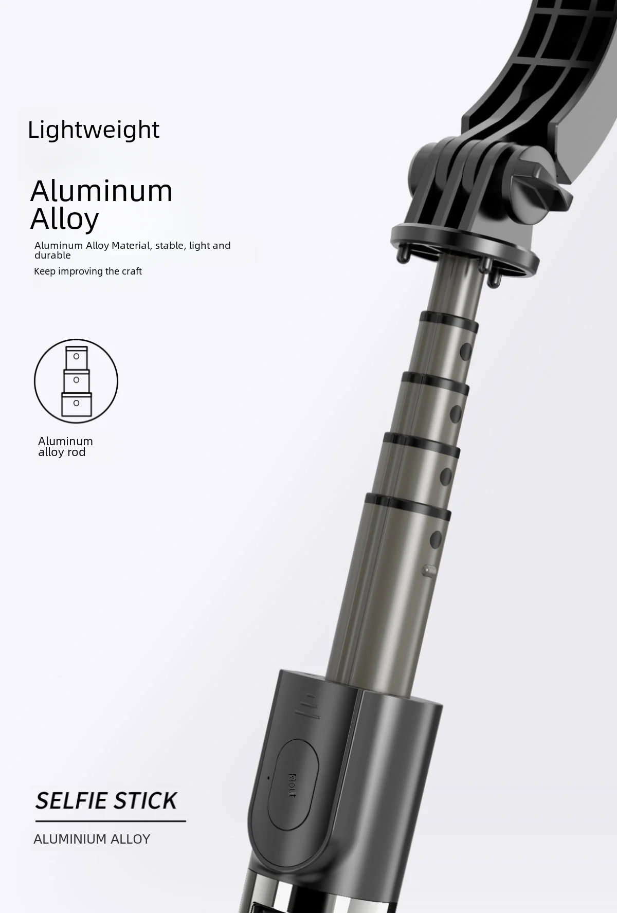 - Aluminum Alloy + ABS Material: Crafted from durable aluminum alloy and ABS, this selfie stick ensures longevity and stability for seamless shooting.