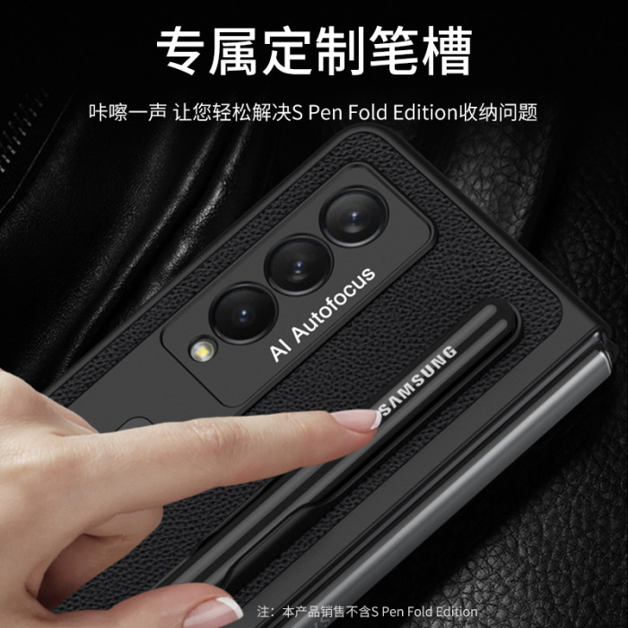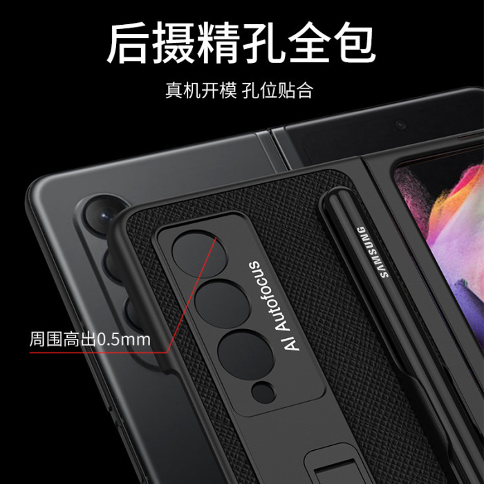 適用於三星zfold3摺疊螢幕筆槽手機殼w22手機殼創意支架素皮保護套