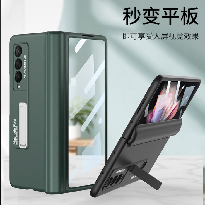 三星fold3手機殼摺疊螢幕w22殼膜鉸鏈磁吸支架保護套適用磁吸折曡