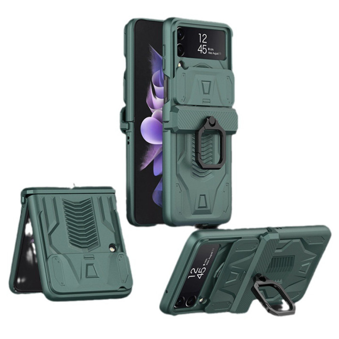 適用三星Flip3手機殼全包指環zflip3手機殼創意推窗摺疊螢幕保護套