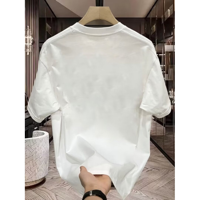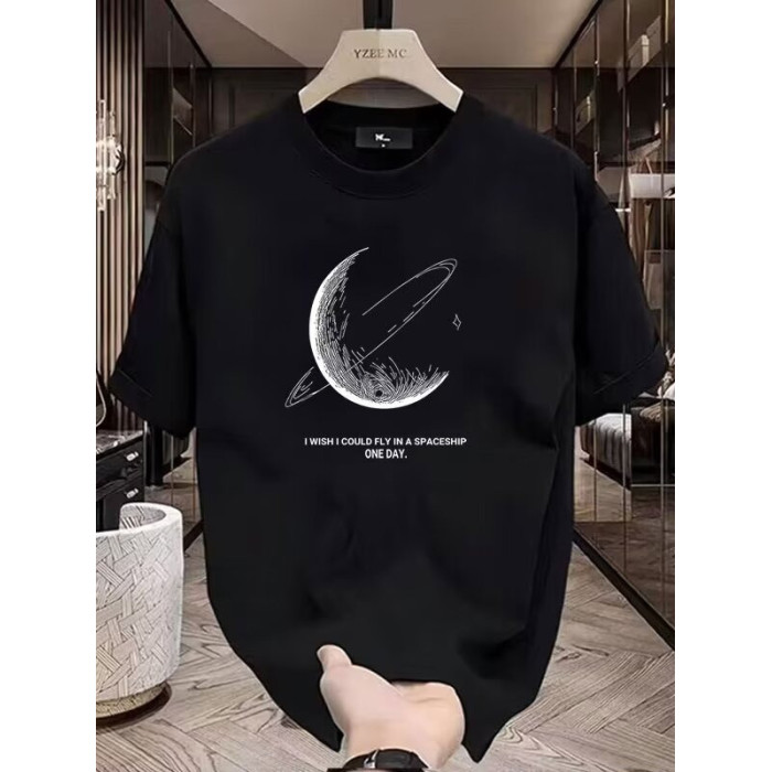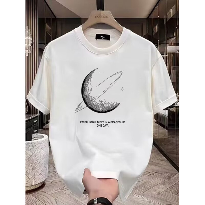 夏季新款純棉短袖男t恤時尚休閒百搭潮牌星球印花圓領體恤上衣服