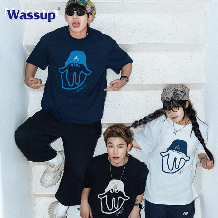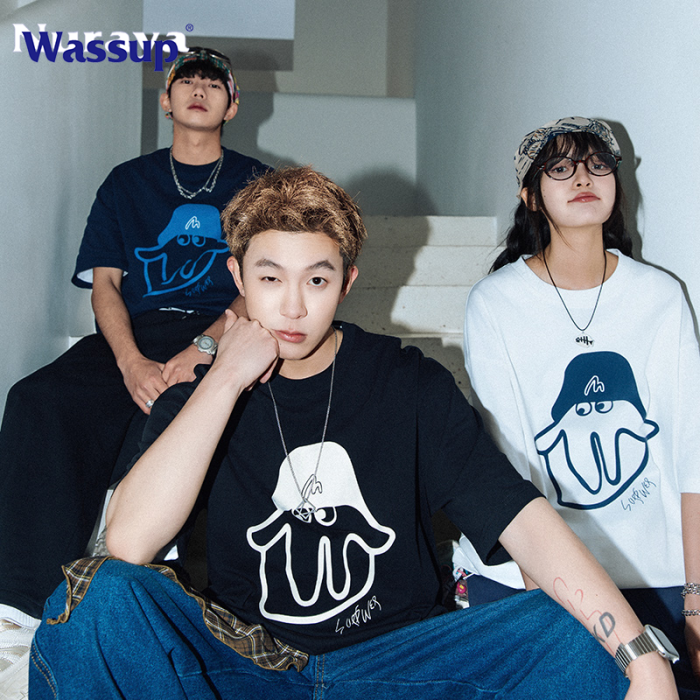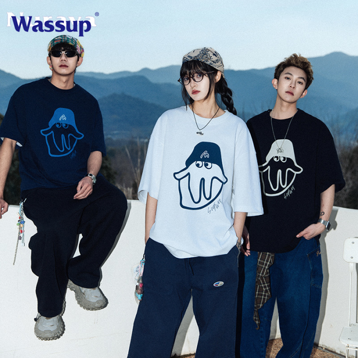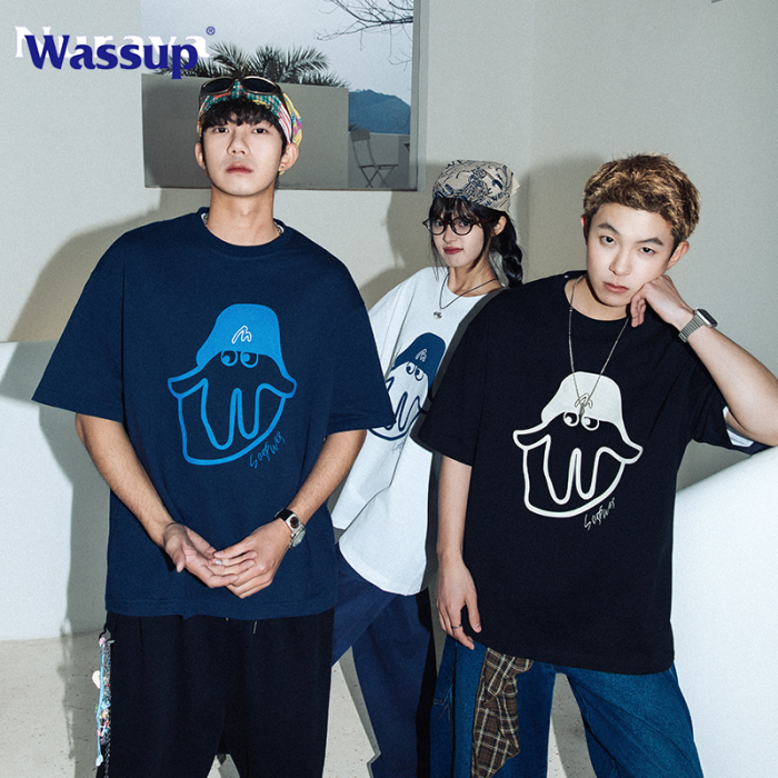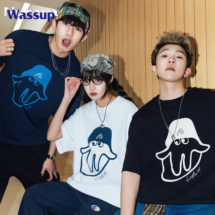 WASSUP冰爽短袖男t恤夏季男裝寬松半袖青少年潮牌休閒外套上衣