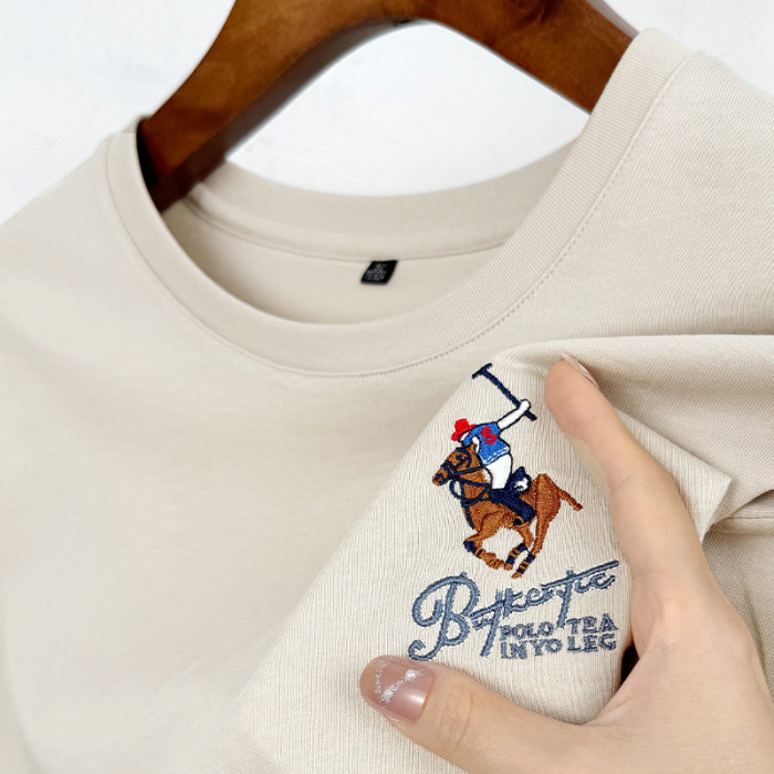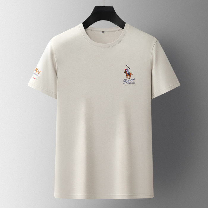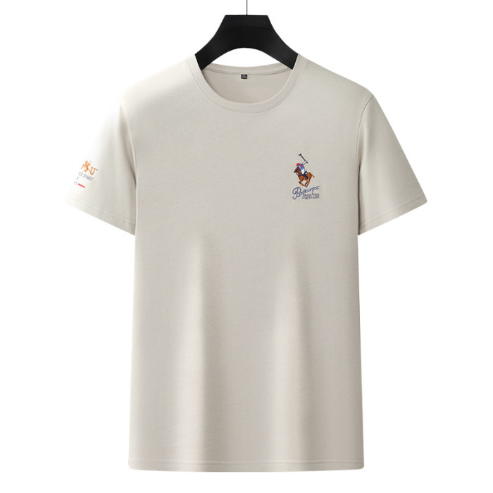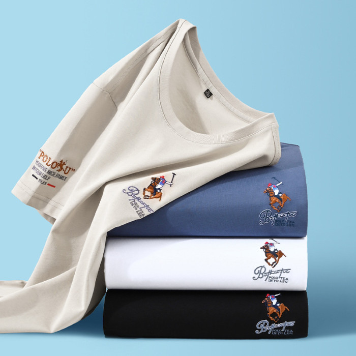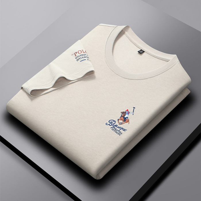 阿裡虎男裝夏季新款純色純棉圓領短袖精美刺綉薄款時尚休閒男T恤